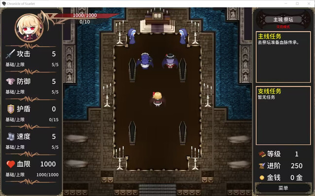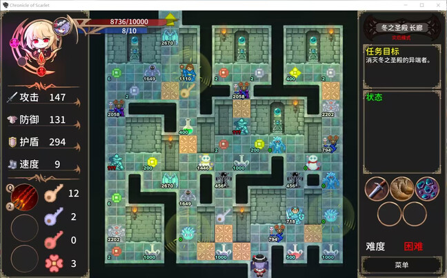 绯红编年史( Chronicle of Scarlet )是一款由冲小猪工作室( Charge Piggy Studio )东方Project同人的魔塔Like(WWA Like)的角色扮演游戏(RPG)。在游戏中,您需要扮演血族【真红】一族的次女——芙兰朵露·斯卡雷特,在奇幻的世界里激活自己的天赋、构筑装备、消灭敌人,并随着故事的进展做出自己的选择,从而走向不同的结局。