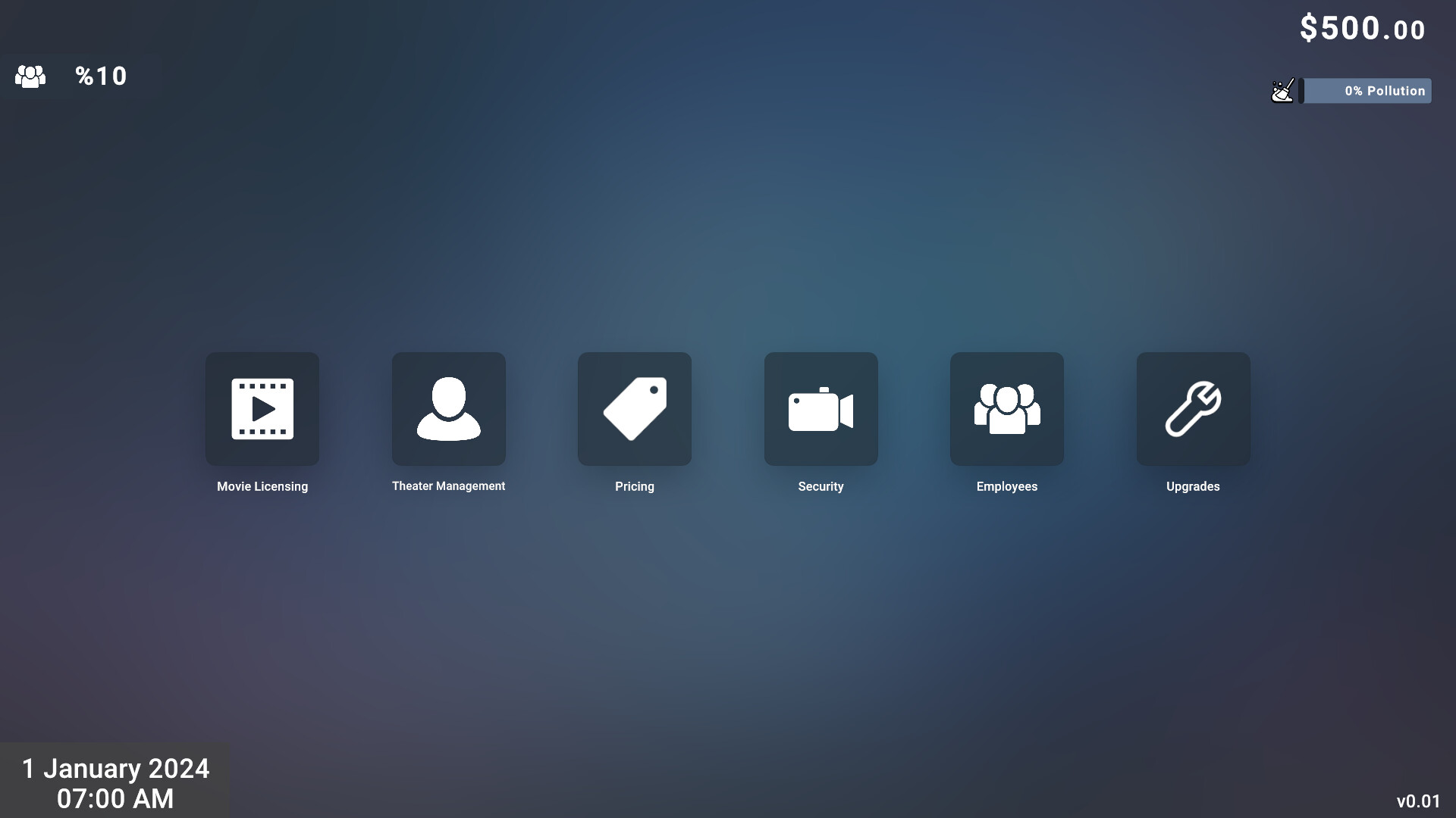 Cinema Simulator 2025 is a simulation game where you will manage your own movie theater and test your strategy and management skills. Starting from a small movie theater, try to become a giant in the movie industry.
