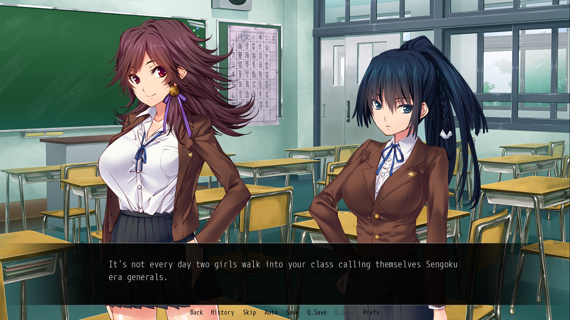 Our story begins with Jun, and his childhood friend Yui, cleaning the dean's office as punishment for Yui's latest prank. Of course, if nothing went wrong this would be a pretty bland story which leads to Yui knocking over a pretty old and expensive looking vase and from it emerge two Sengoku Era generals but... they're hot babes?! The ever-reliable Yui bolts as soon as the vase shatters leaving our protagonist, Jun, responsible for helping Uesugi Kenshin and Takeda Shingen adapt to modern Japan. Experience a wild ride alongside Jun and the commander babes as they unravel the secrets of modern mathematics, the English language, and the art of babymaking!