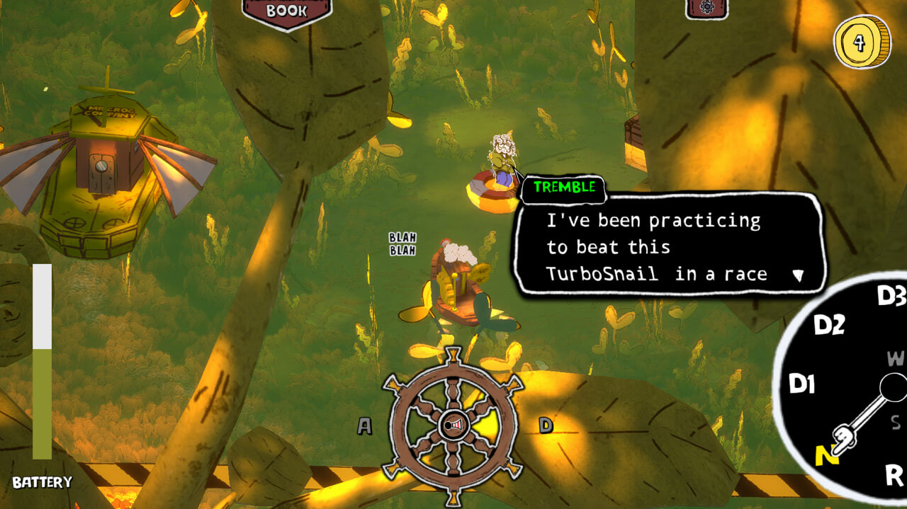 Travel on a wind-up boat and complete quests in the charming town of Whaleville located inside a whale.