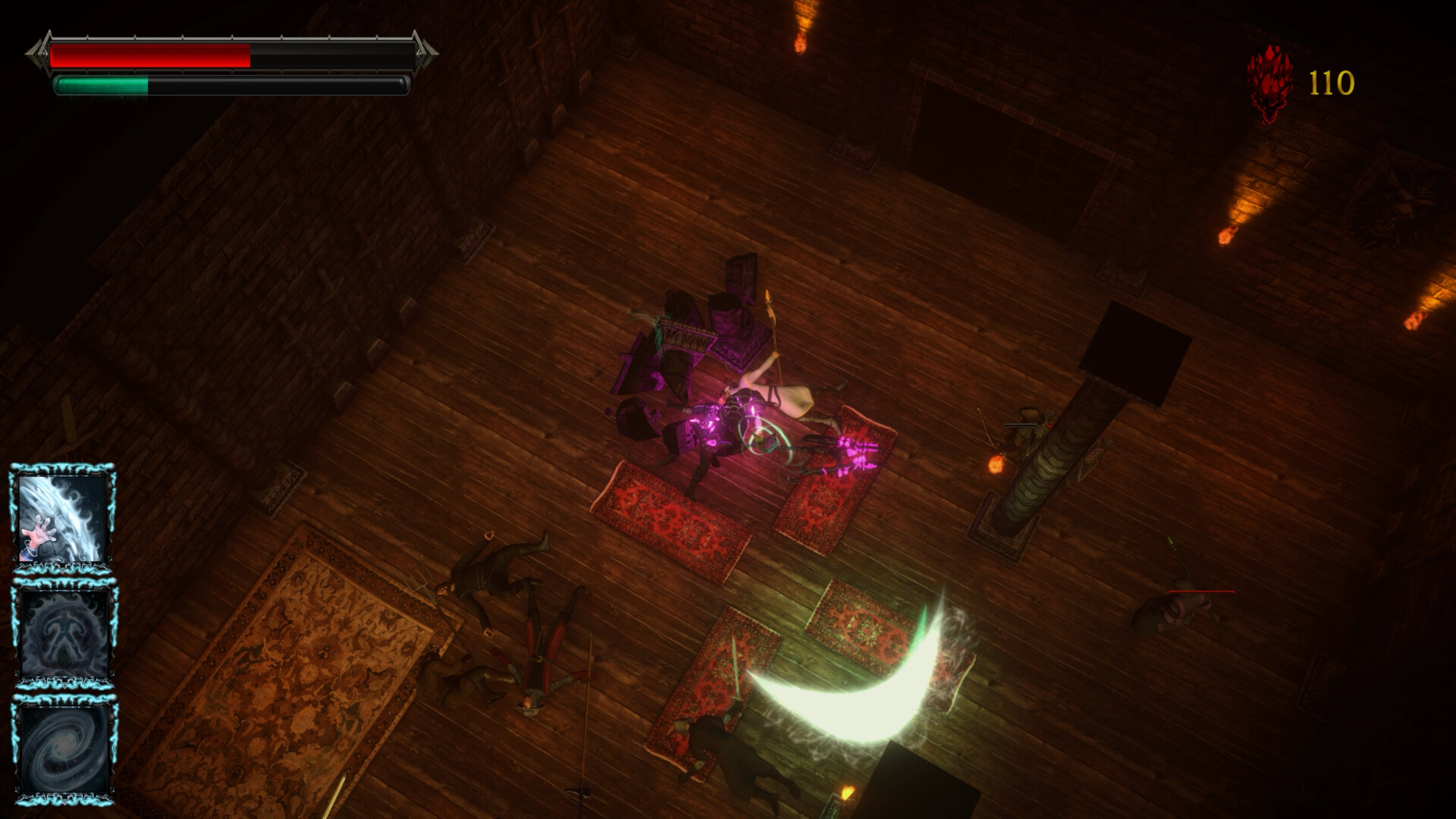 Tome of the Damned is a dark top-down roguelike where a cursed mage fights for freedom. Defeat castle guards, enhance weapons and spells. Enchanted weapons, elemental grimoires, ruthless bosses. Die, adapt, try again.