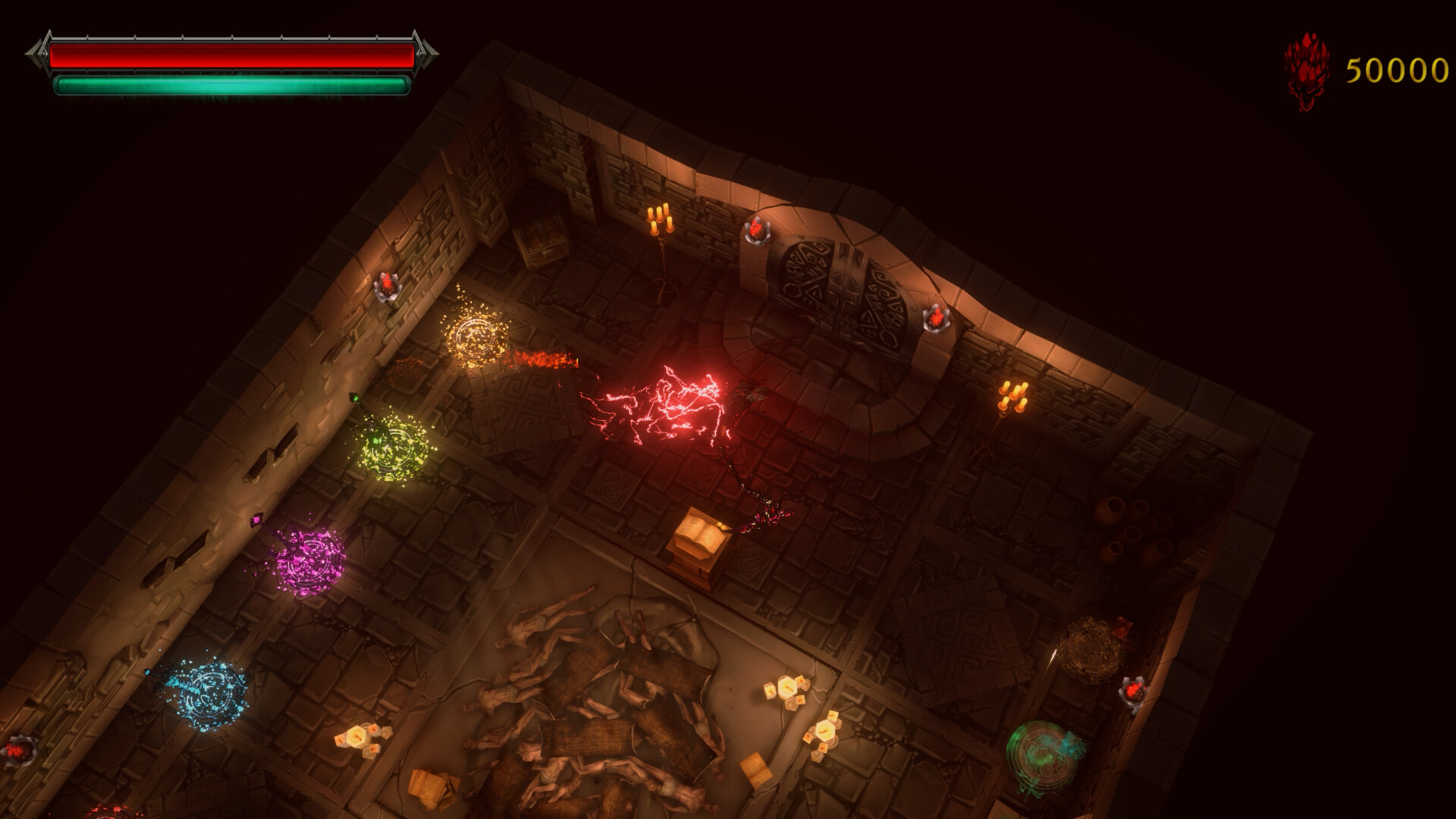 The game features five powerful weapons and four grimoires, each representing a distinct elemental force. These can be unlocked using the souls of defeated enemies, adding strategic depth and providing even more ways to create a unique playstyle.