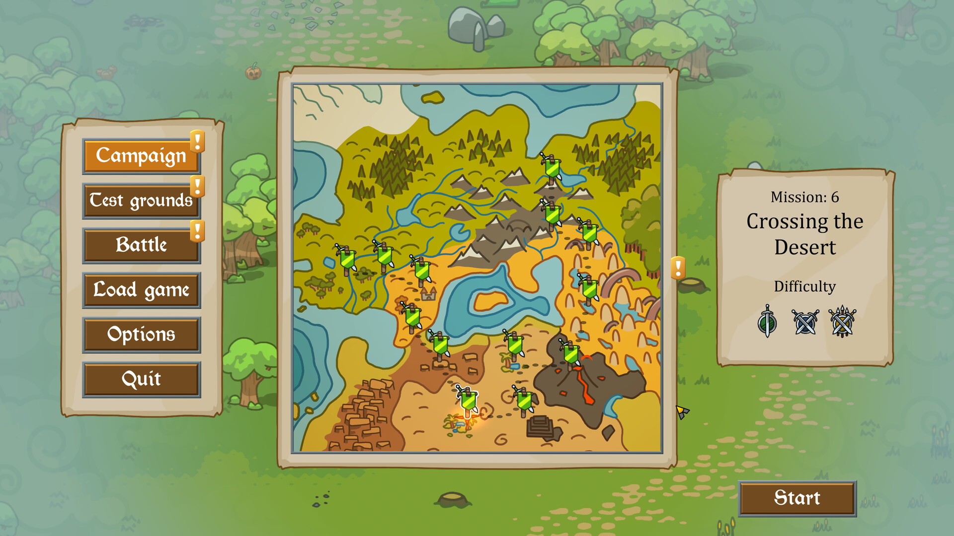 Battle Mode: Create one-off skirmishes against up to three AI-controlled armies, across multiple maps from simple river crossings to rocky hilltops.
