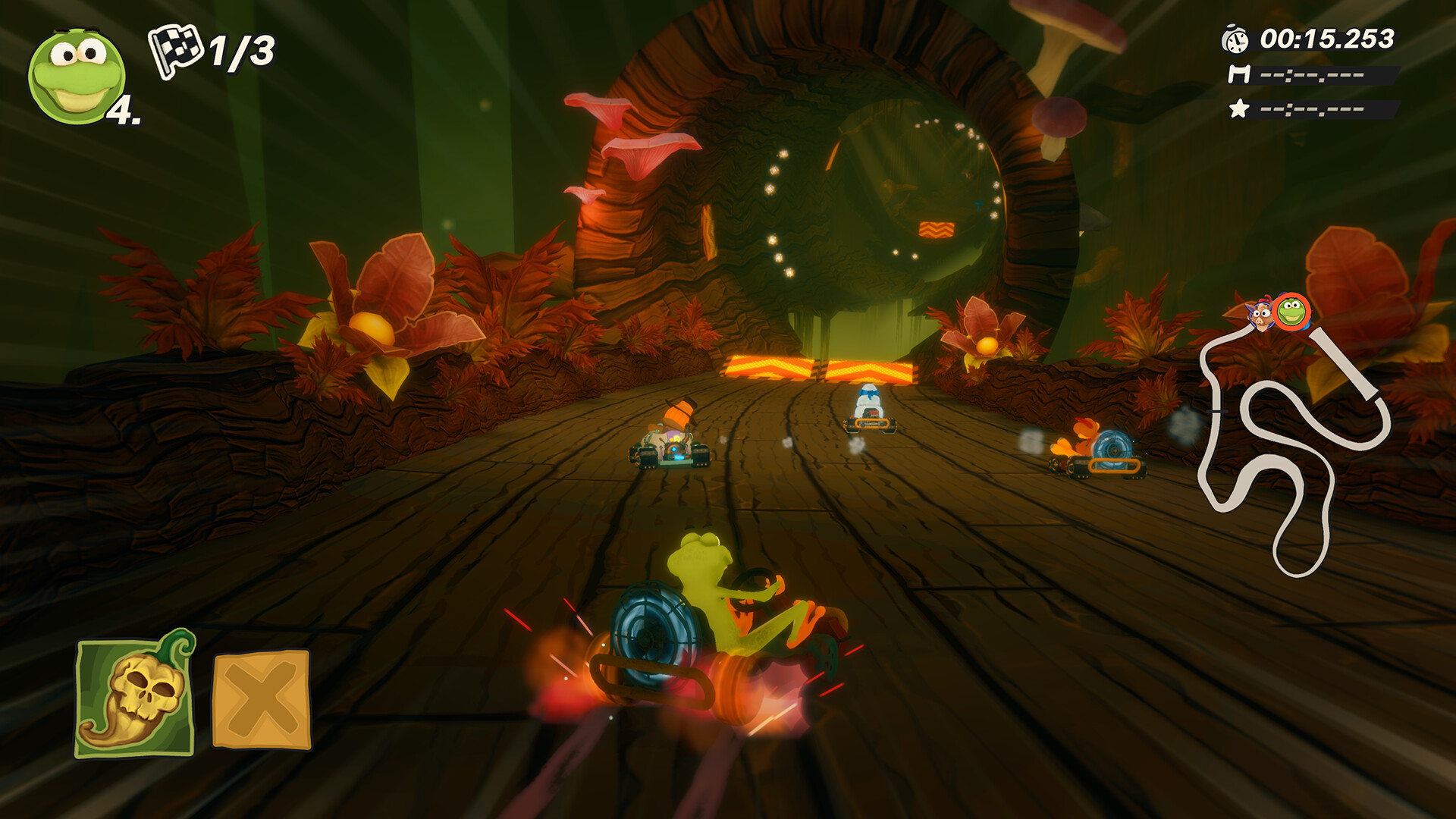 Leap into your kart and jump into the fastest poultry race of all time. This ultimate championship title chase offers you a brand new racing experience, with improved driving physics, revised cartoon graphics and head-over-wheels loops, alongside crossplay and online multiplayer too.