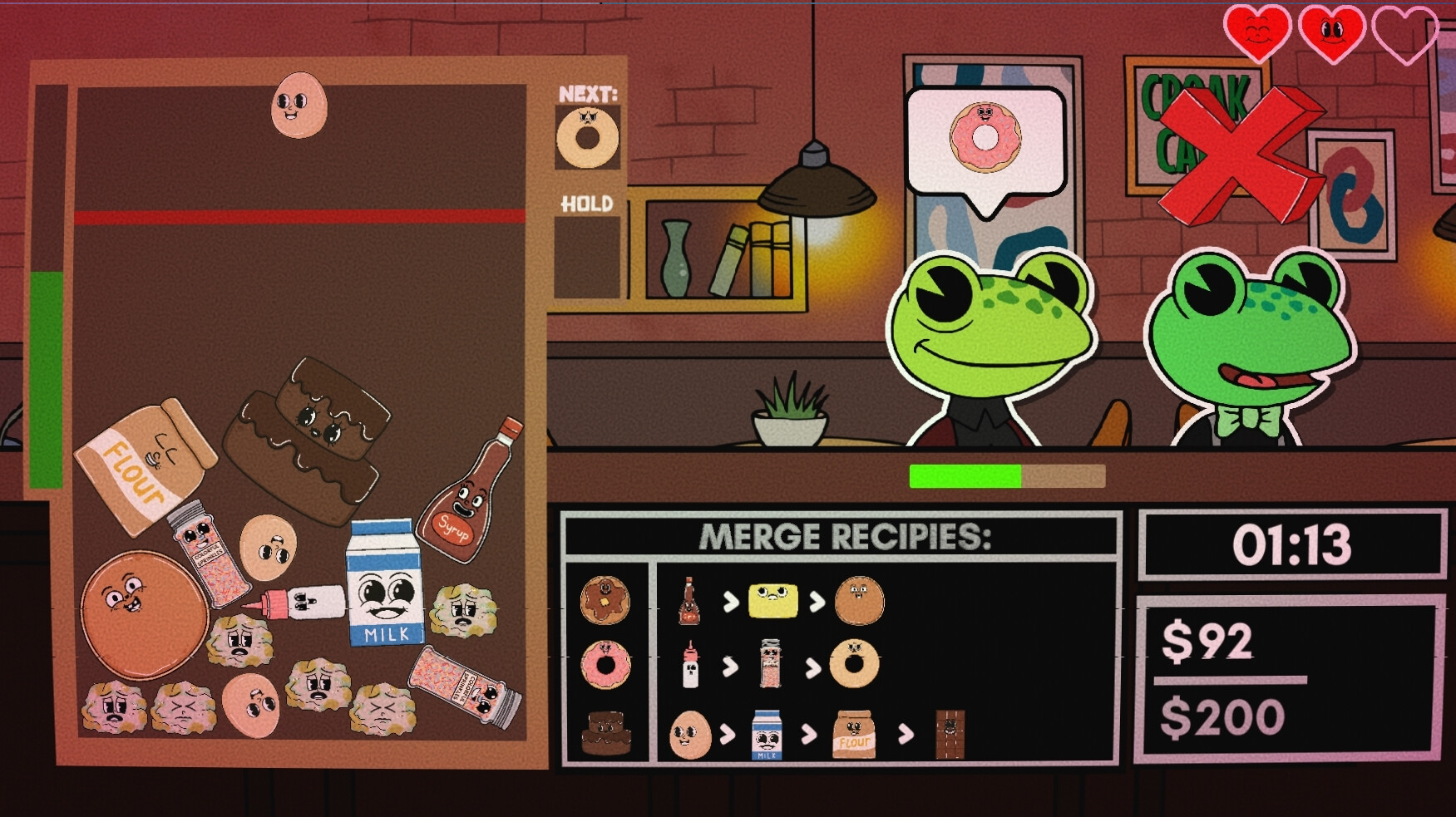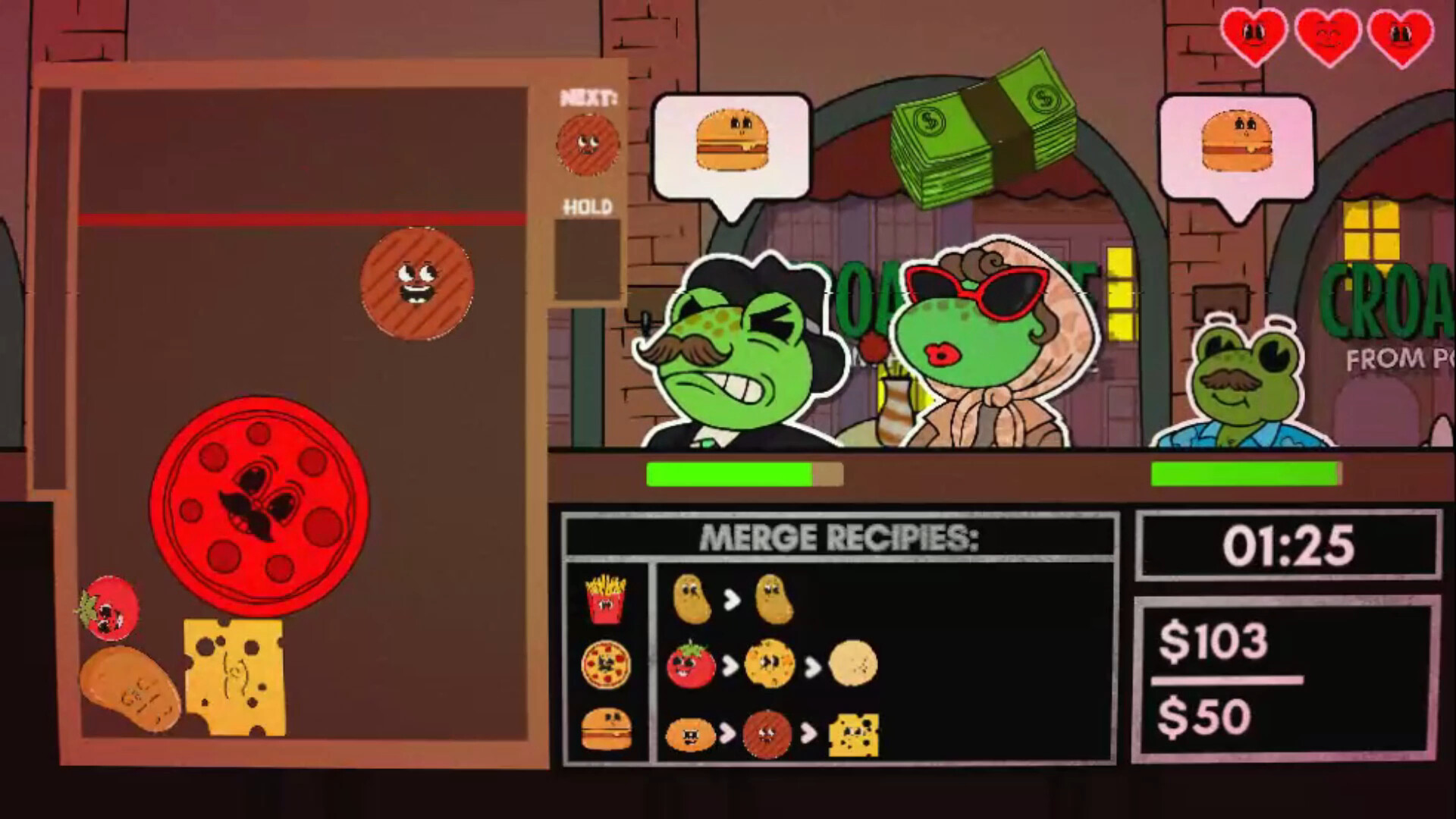 CROAK CAFE: FROM POND TO PLATE is a thrilling roguelike game where you craft dishes under time pressure to serve demanding frogs. Upgrade your skills and face challenging bosses in this fast-paced culinary adventure. Can you become the ultimate chef?