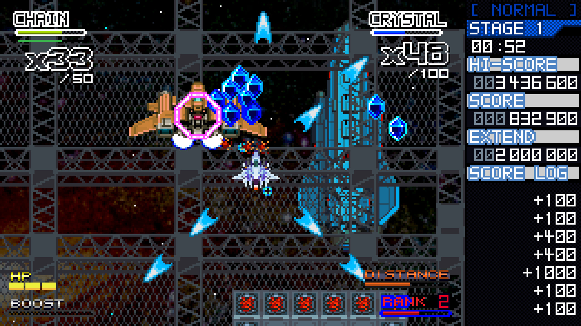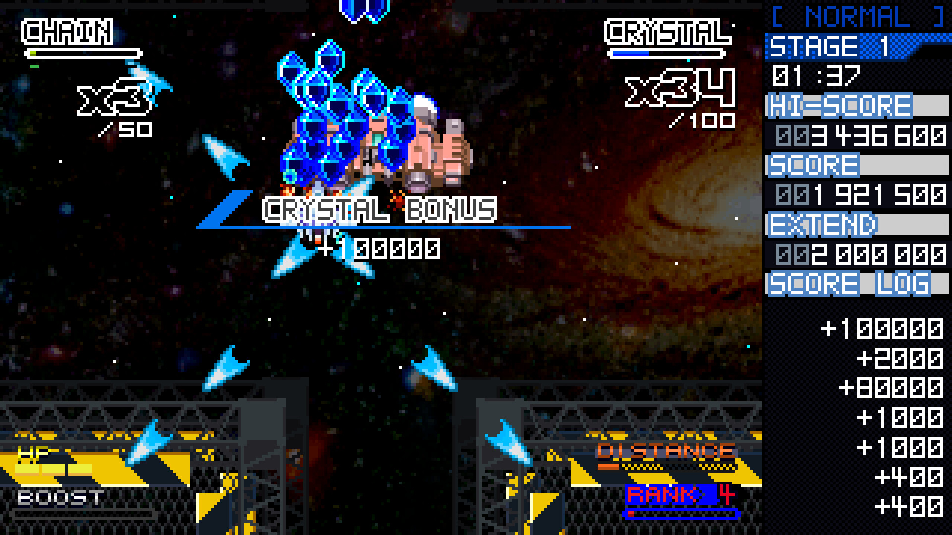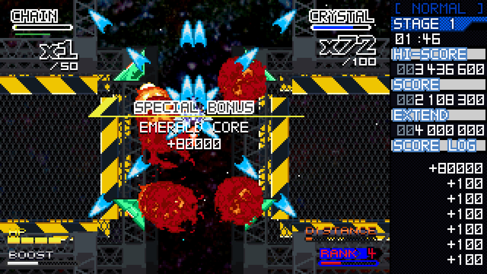 Shoot the enemy at close range! Crystal Breaker is a vertically scrolling shmup that focuses on close range attack.