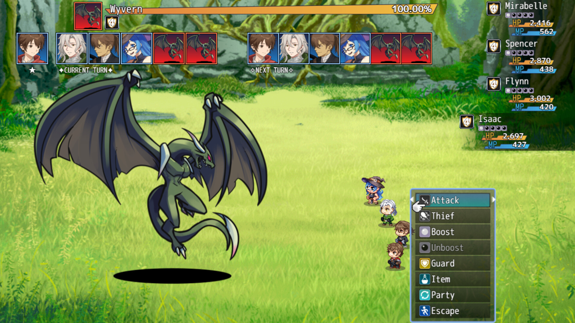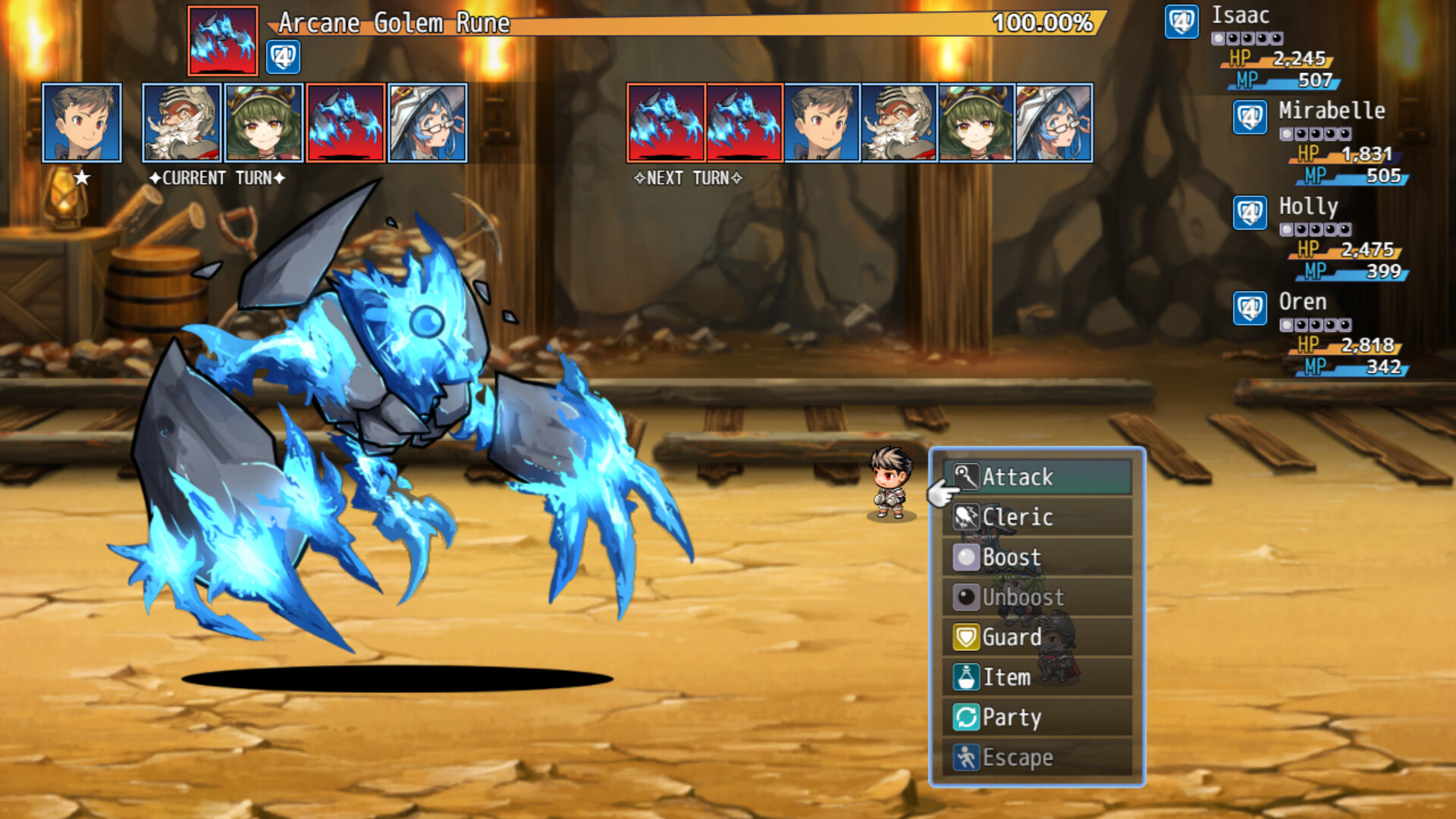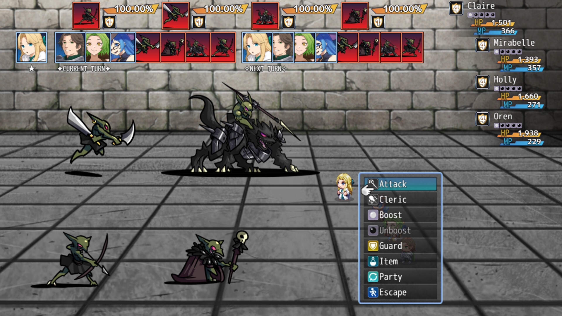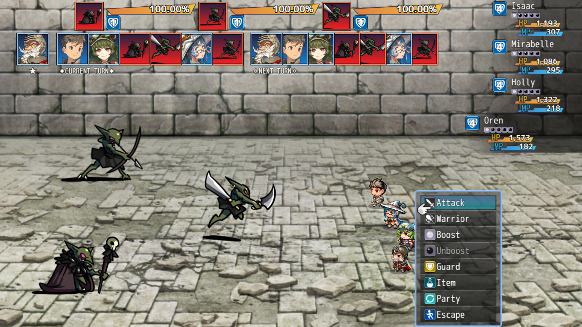 A turn-based RPG, featuring pixel style graphics and 3D animations during battles. Target enemy weaknesses to stun and lower their defenses, and then finish them by using Boost Points to increase the strength or number of attacks a character uses in battle to inflict massive damage!