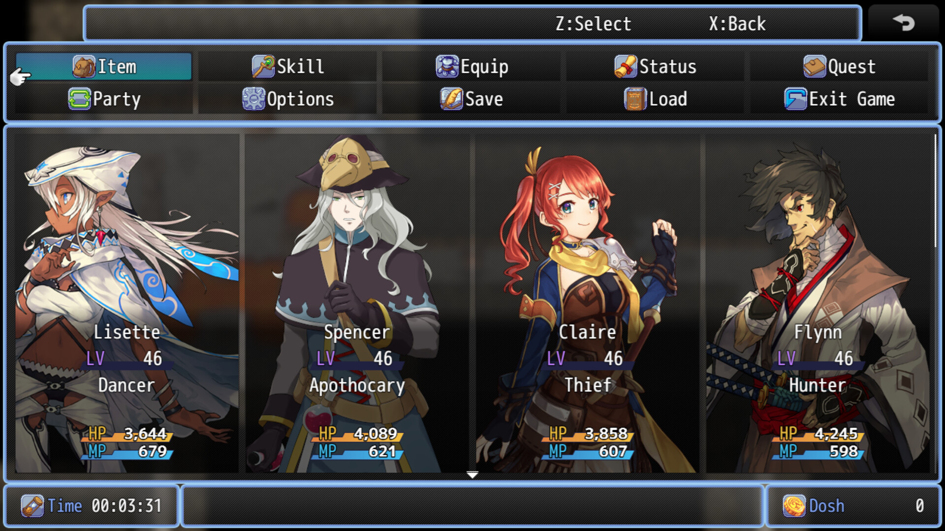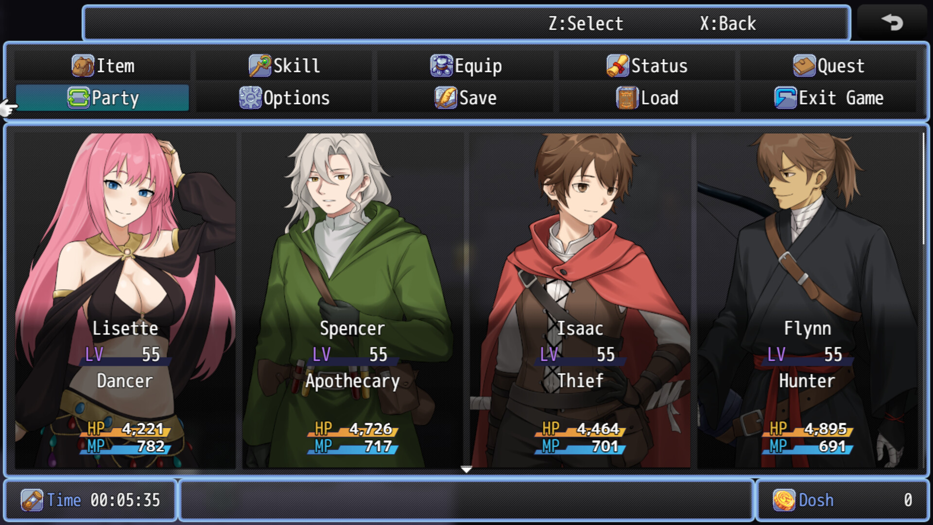 Embark on an adventure across a fantasy world with a party of 8 playable characters, each with their own weapons and unique abilities!