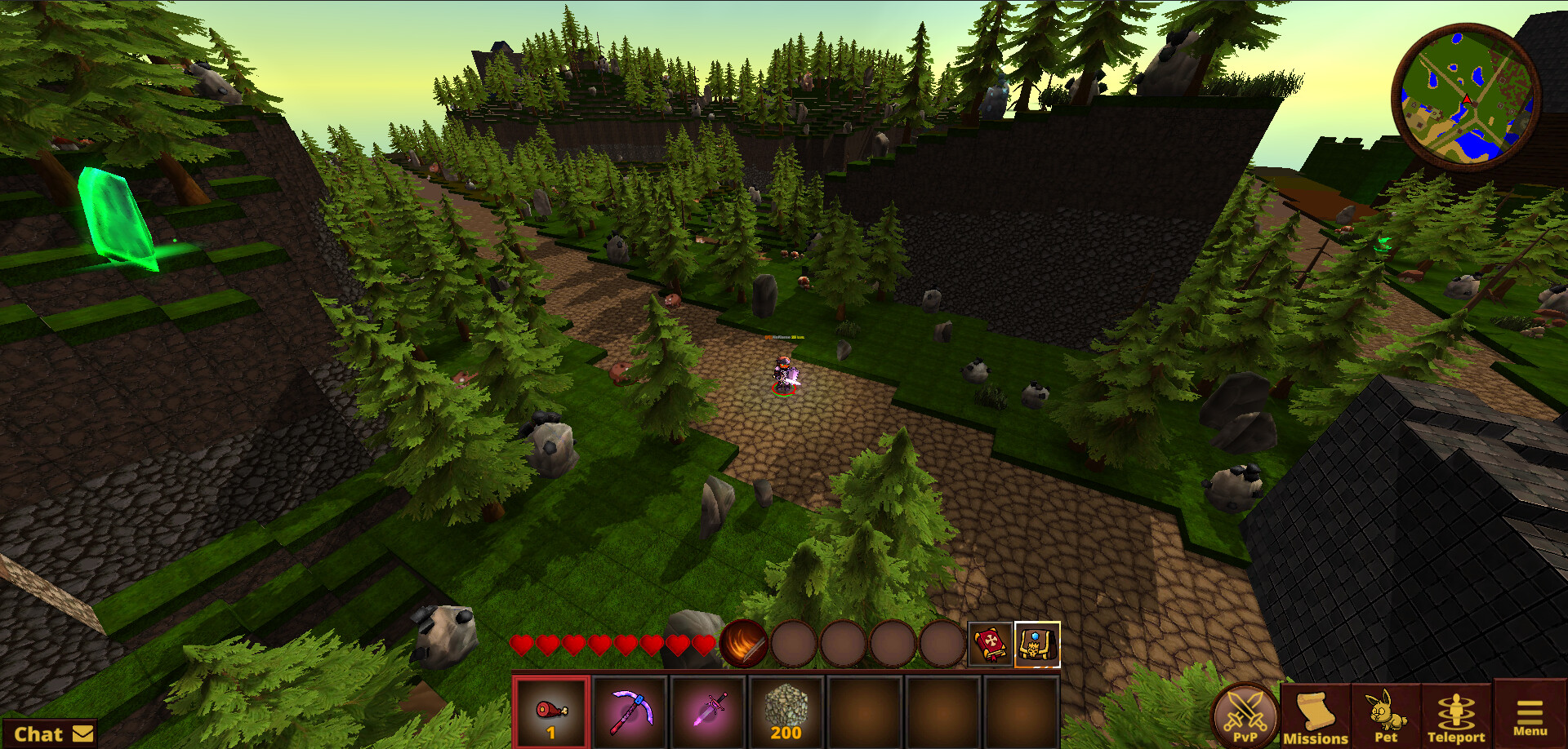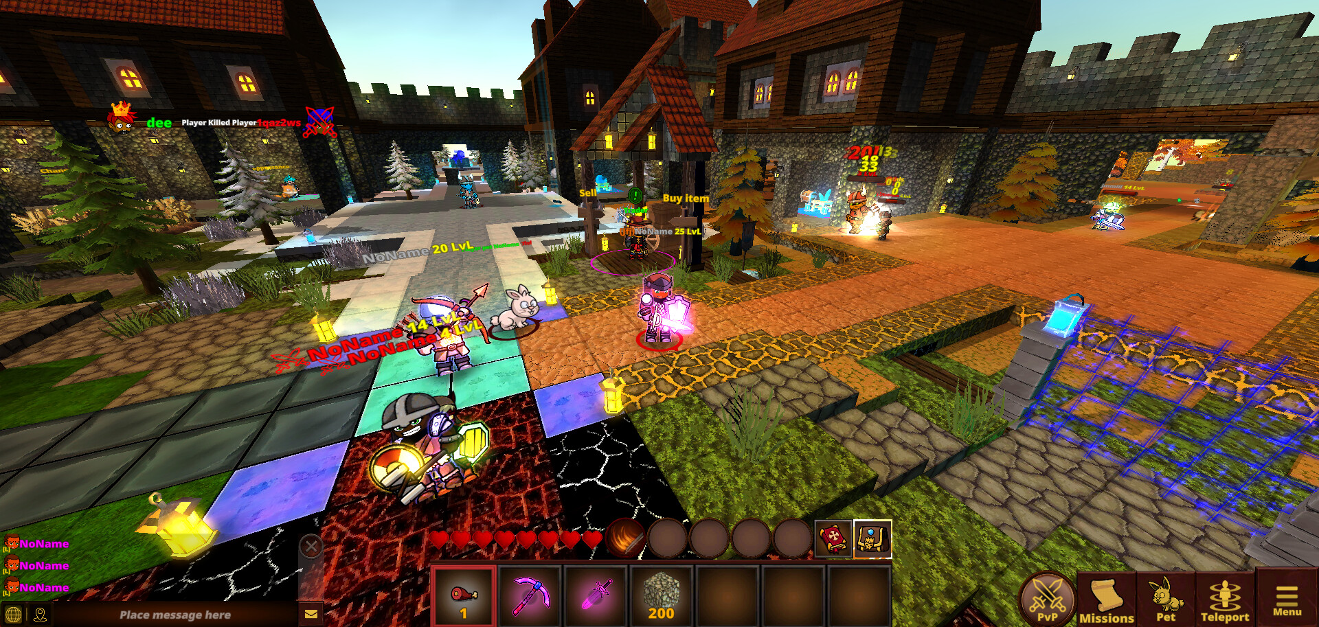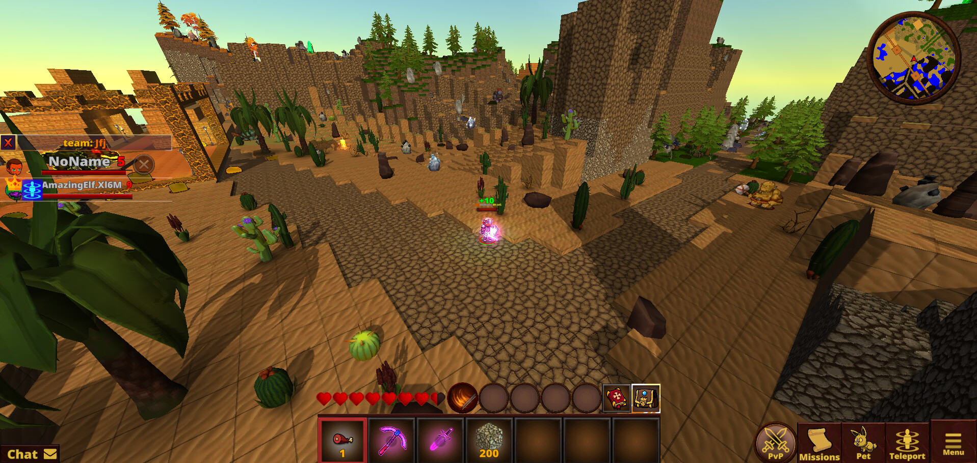 3D Blocky Open-World MMORPG.You can Build, farm, craft, create armies that defend your home and guild in tower-defense style. PvP, gear and skill upgrades with visual effects. Explore biomes, dungeons, cities. Complete and create quests. Rate player houses.Tame pets and upgrade them.