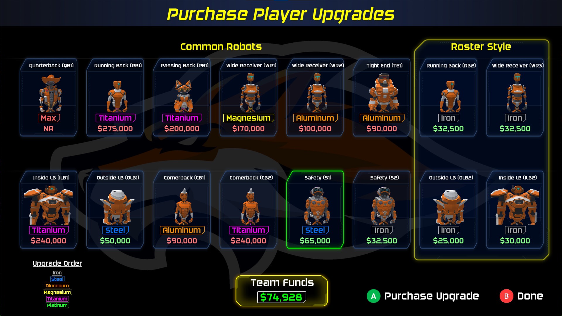 Robot football at its best! Play in multi-season franchise, take on the explosive Headhunter mode, or just jump into quick-play to get in some fast action. Earn money and upgrade your robots in-game! Beware of taking too many hits, or you'll explode and find your robots laying in pieces all over the field.