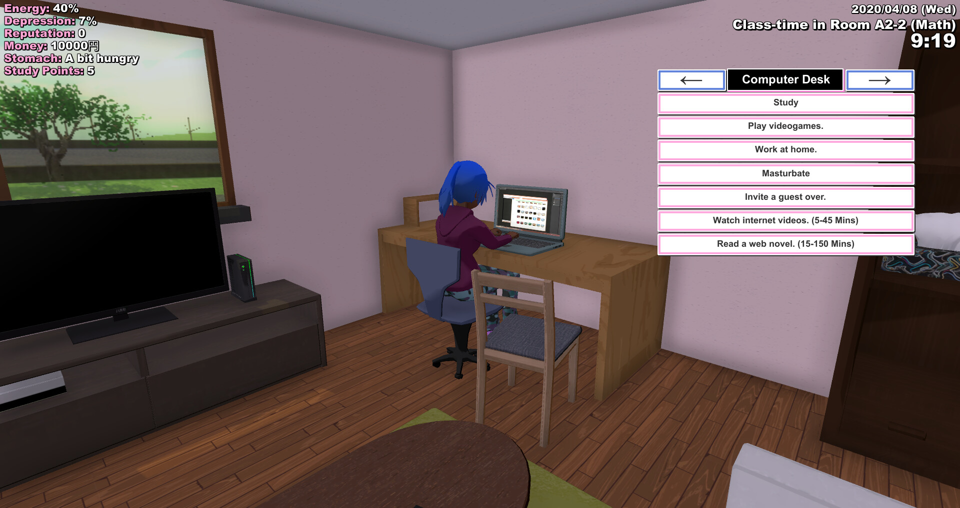 Daigaku Gurashi is an anime-themed social simulator set in the strange small town of Kimyōmori. You're temporarily living there to do a year of schooling at Monorisū College.