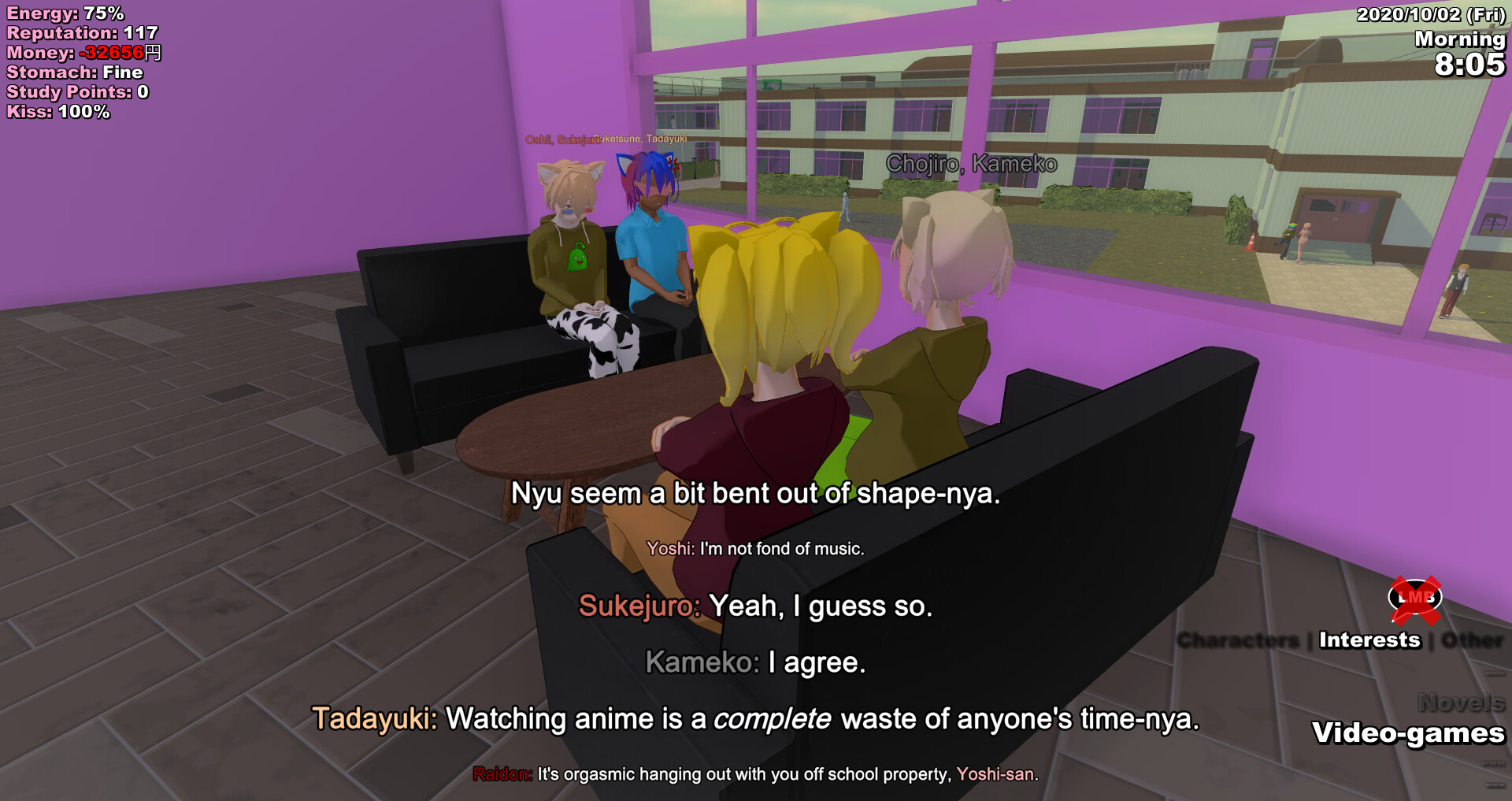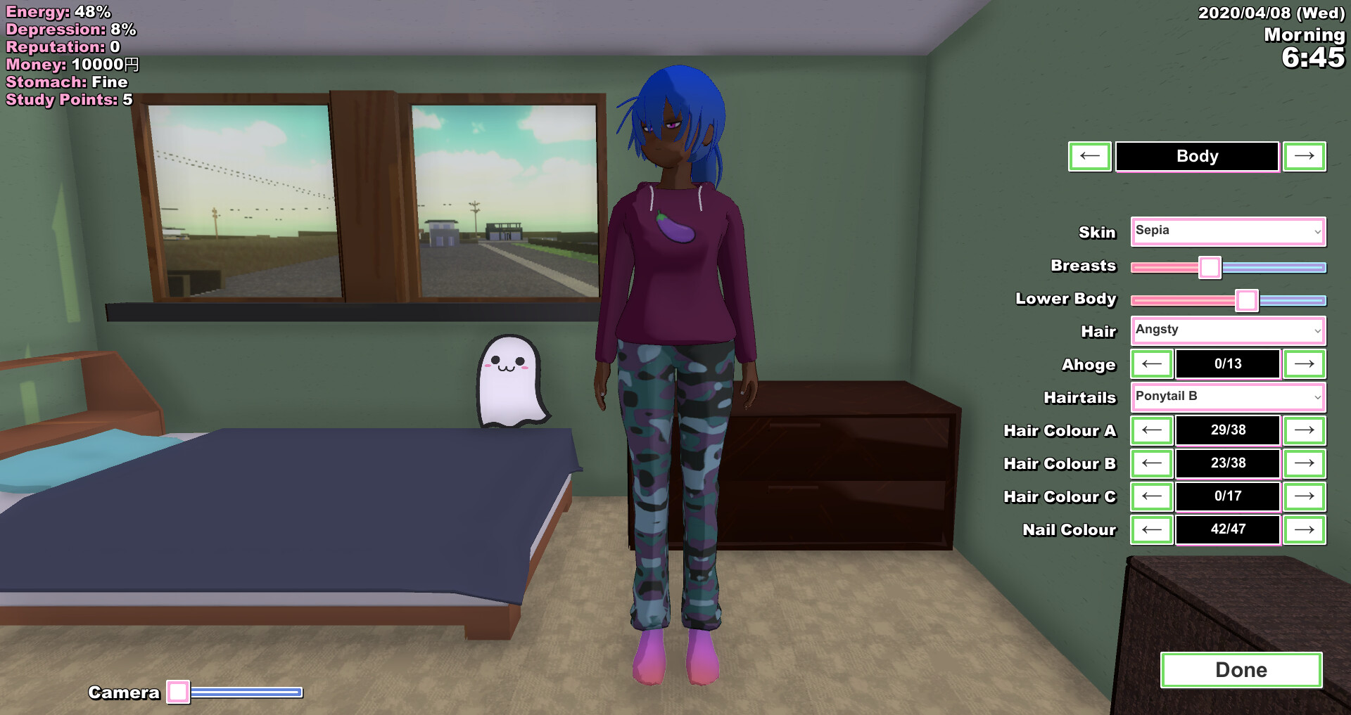 - Many character traits that can be mixed and matched (tsundere, pickpocket, kuudere, vegetarian, chuunibyou, masochist, introvert, etc.)