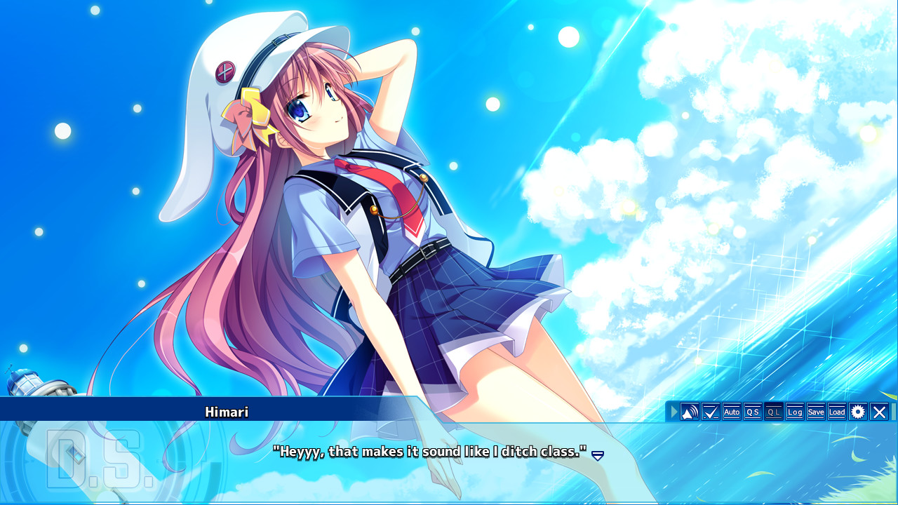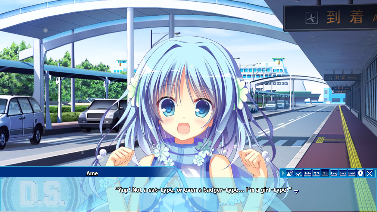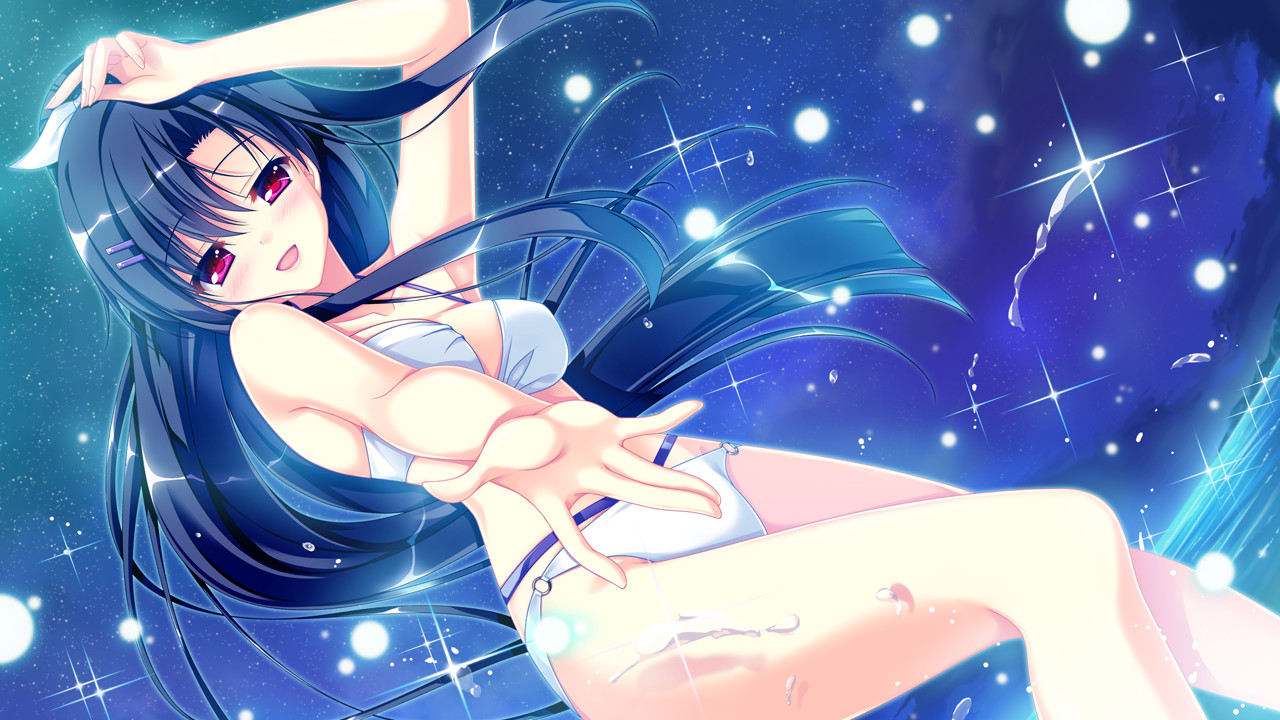 The protagonist steps foot on this island paradise as a transfer student, greeted by a mysteriously glittering sky, as well as the energetic island caretaker Ame, a girl-type AI.