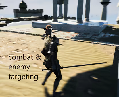 COMBAT While other PvP players can do a small amount of damage to you, most combat will be from enemy AI. The enemies can STUN-LOCK you and deal serious damage. Players can pick up Swords and Shields. Players can Quick Attack with left mouse/R1 and Heavy Attack with right mouse/R2 Block with "V"/"L1" Target nearest enemy with "TAB"/"R3" Rolling when you have enemy Targeted will dodge the enemy in the direction you are moving.
