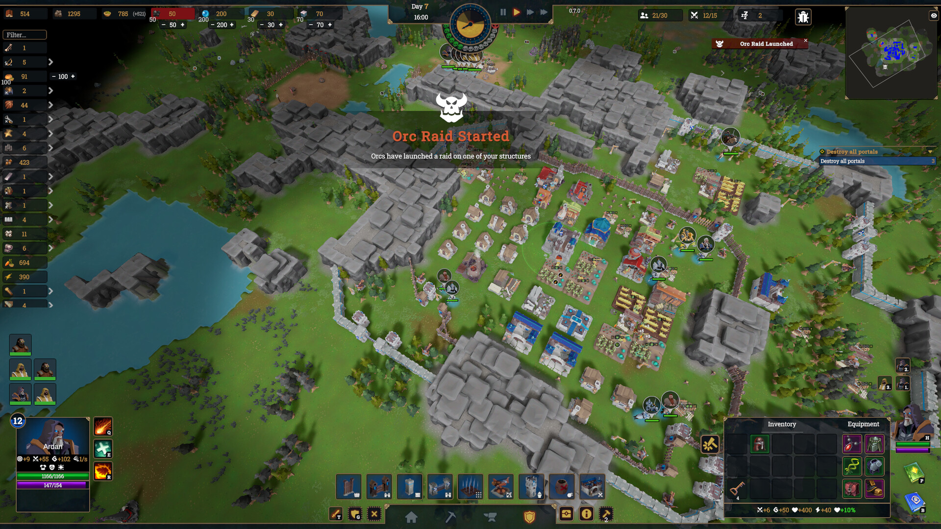 Orc Raids: Expand carefully, orc attacks intensify if you grow too quickly, adding strategic depth.