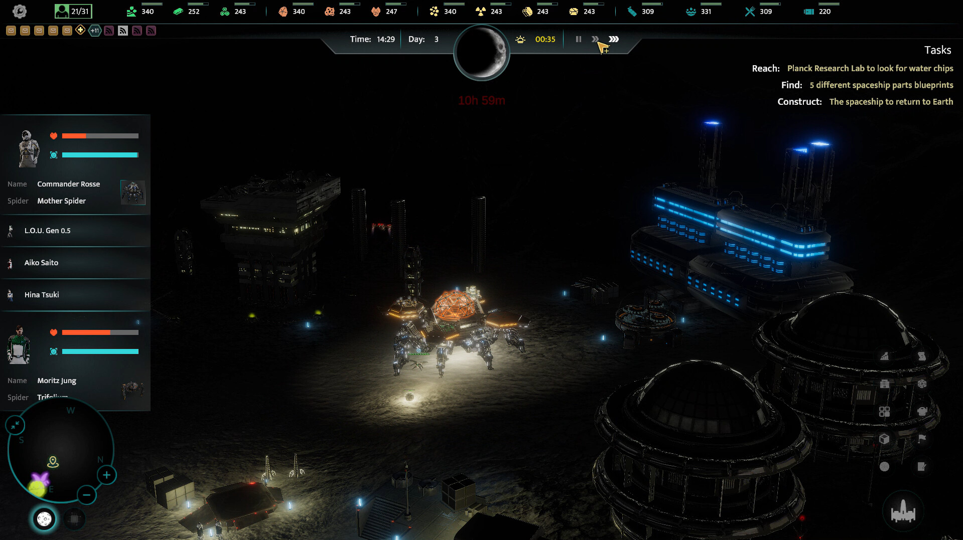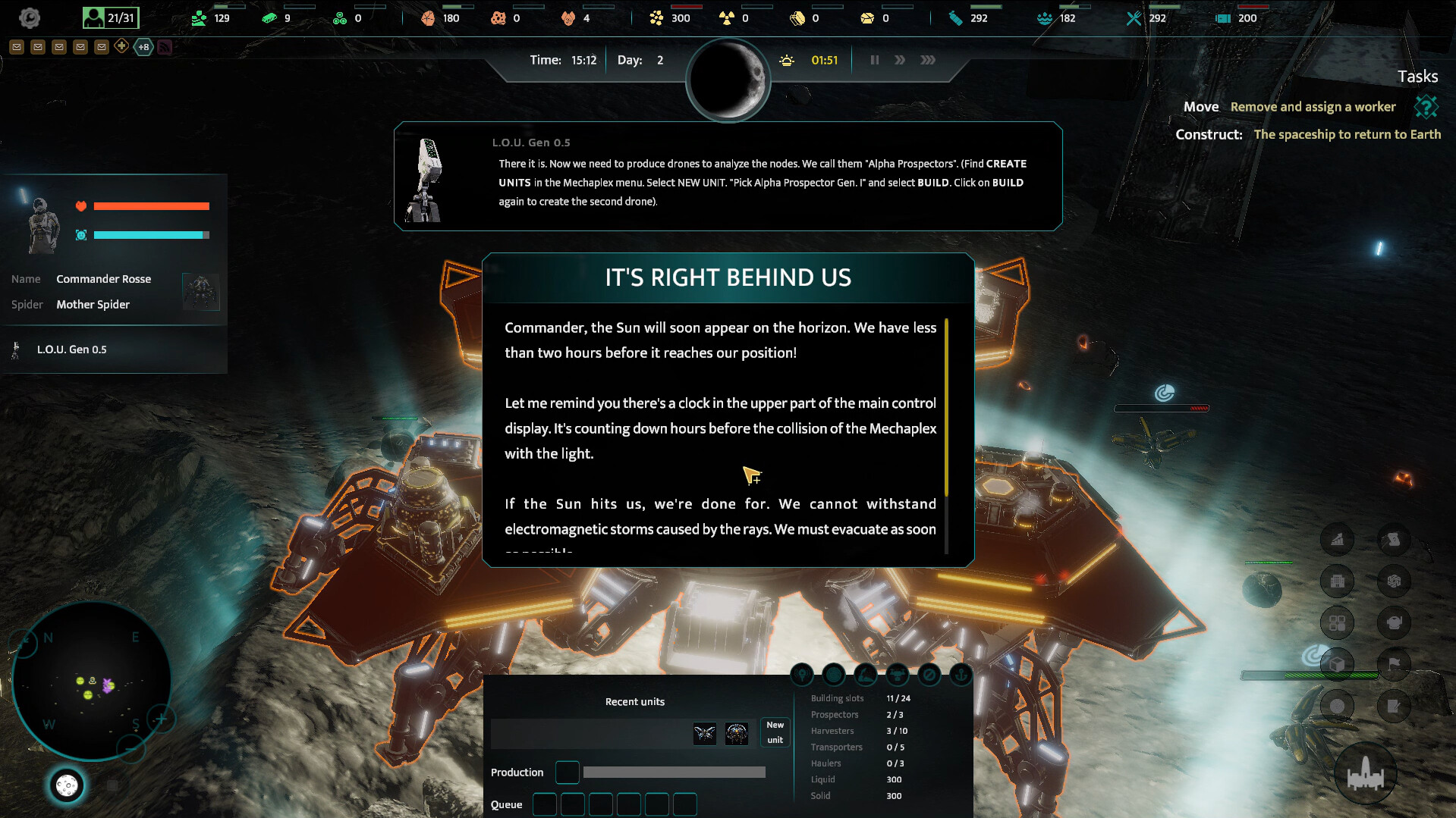 The Mechaplex is your means of survival; build new buildings on top of it, research new technologies, enhance your crew's abilities, and traverse the lunar plains. Develop new mechanical prototypes that will enhance your mineral gathering or focus on enhancing your convoy's movement speed to elude the Sun's deadly grasp. You can't stay in one place for too long.