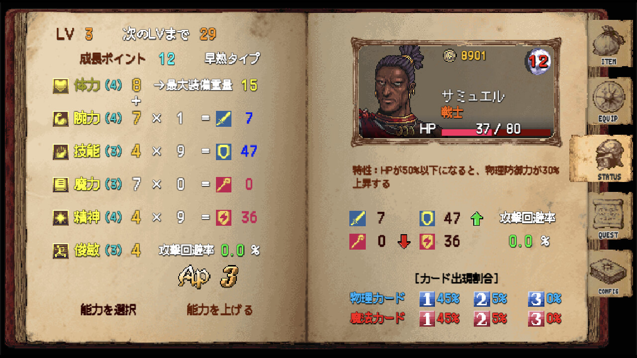 A turn-based RPG with simple rules for building card decks, a dark fantasy with beautiful dot-drawings. Nearly 20 characters can be selected by solving various quests. Customize your fighting style and armor to suit your personality and challenge unexplored dungeons where vicious monsters lurk.