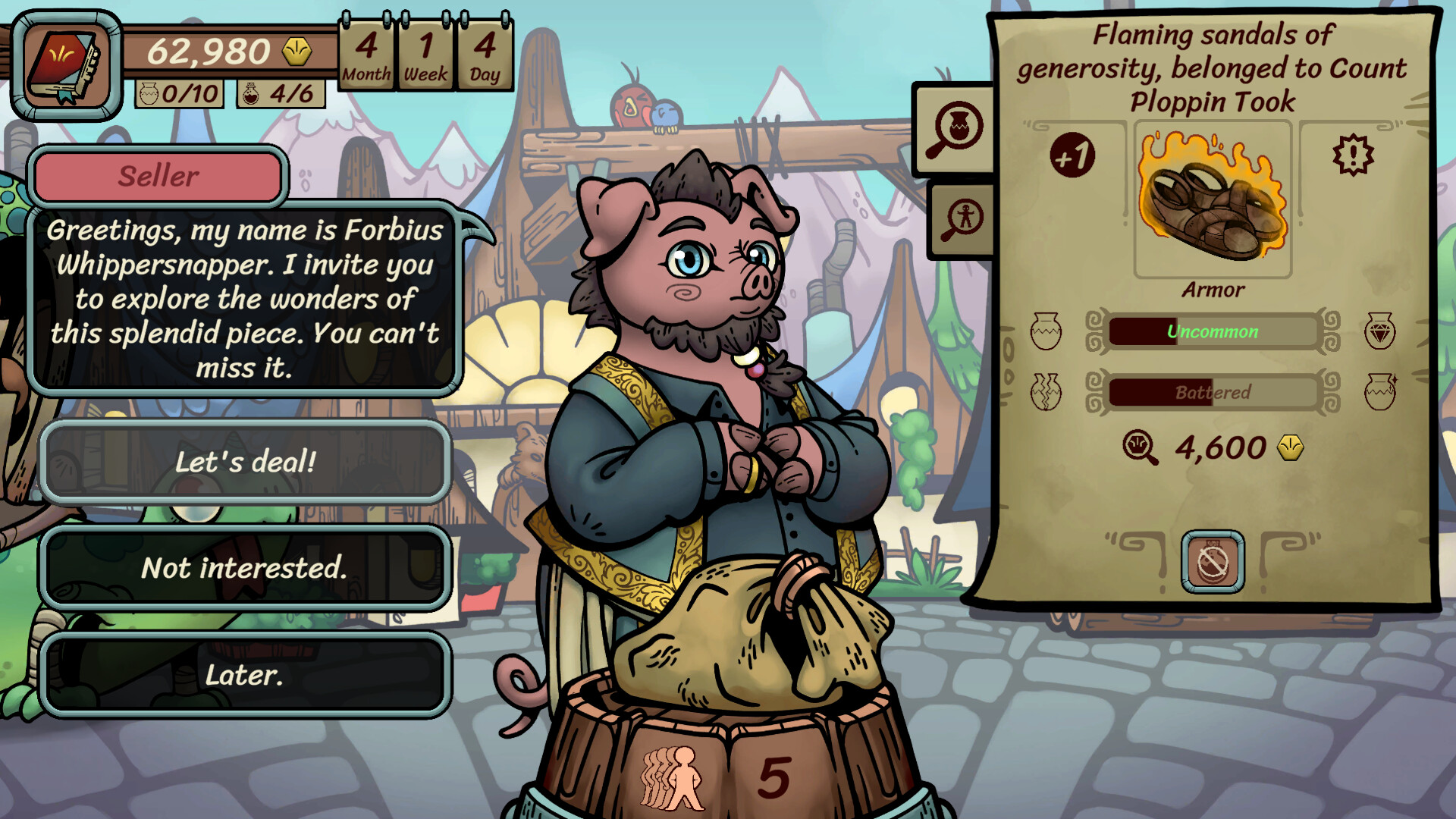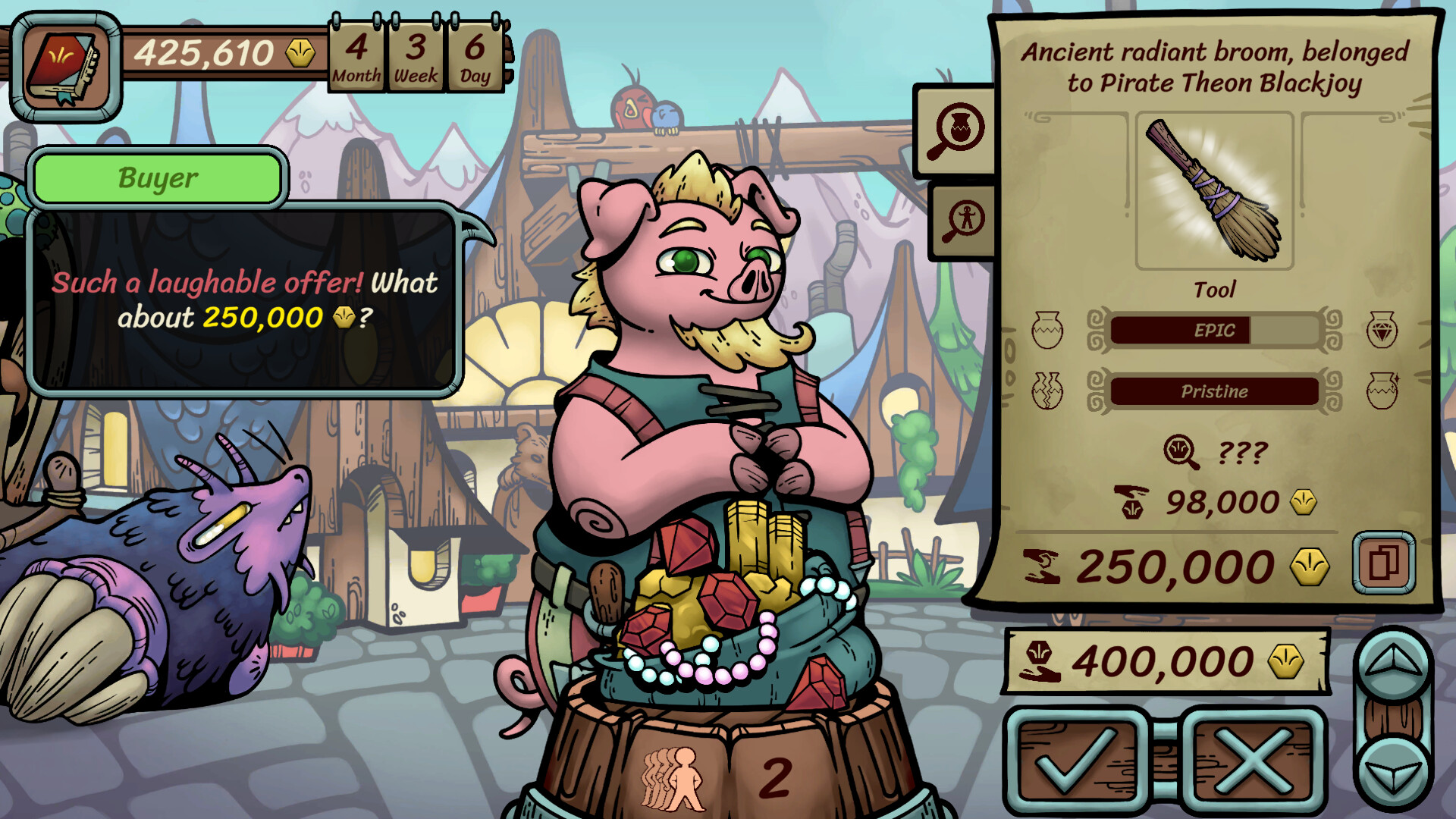 There’s one twist, though; instead of having fake items, the stakes are now higher because a mistake might cause you to buy and sell cursed objects. You must be careful when coming across said goods because they might curse you if you keep them for too long, and only a Cleric can get rid of them!