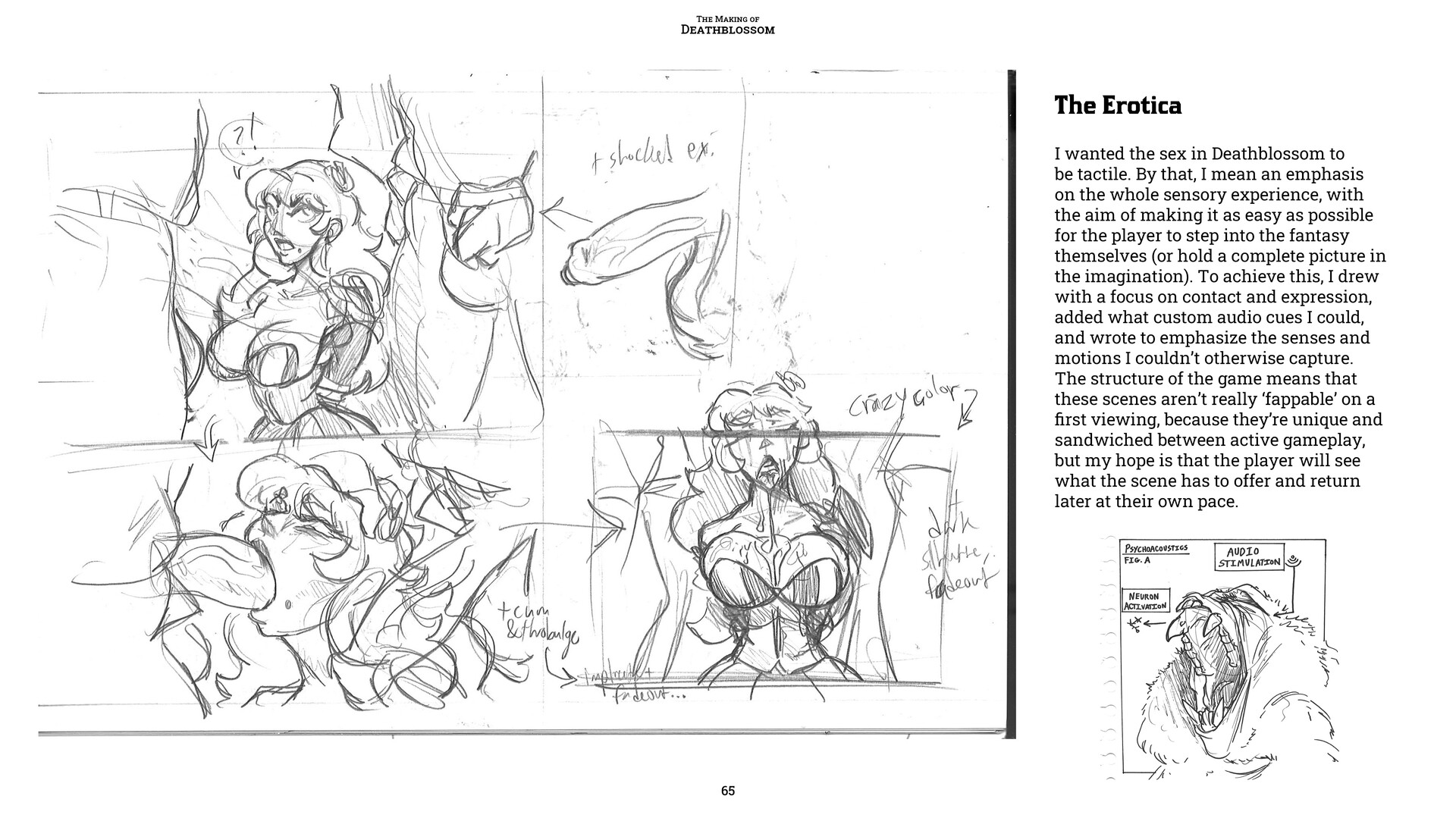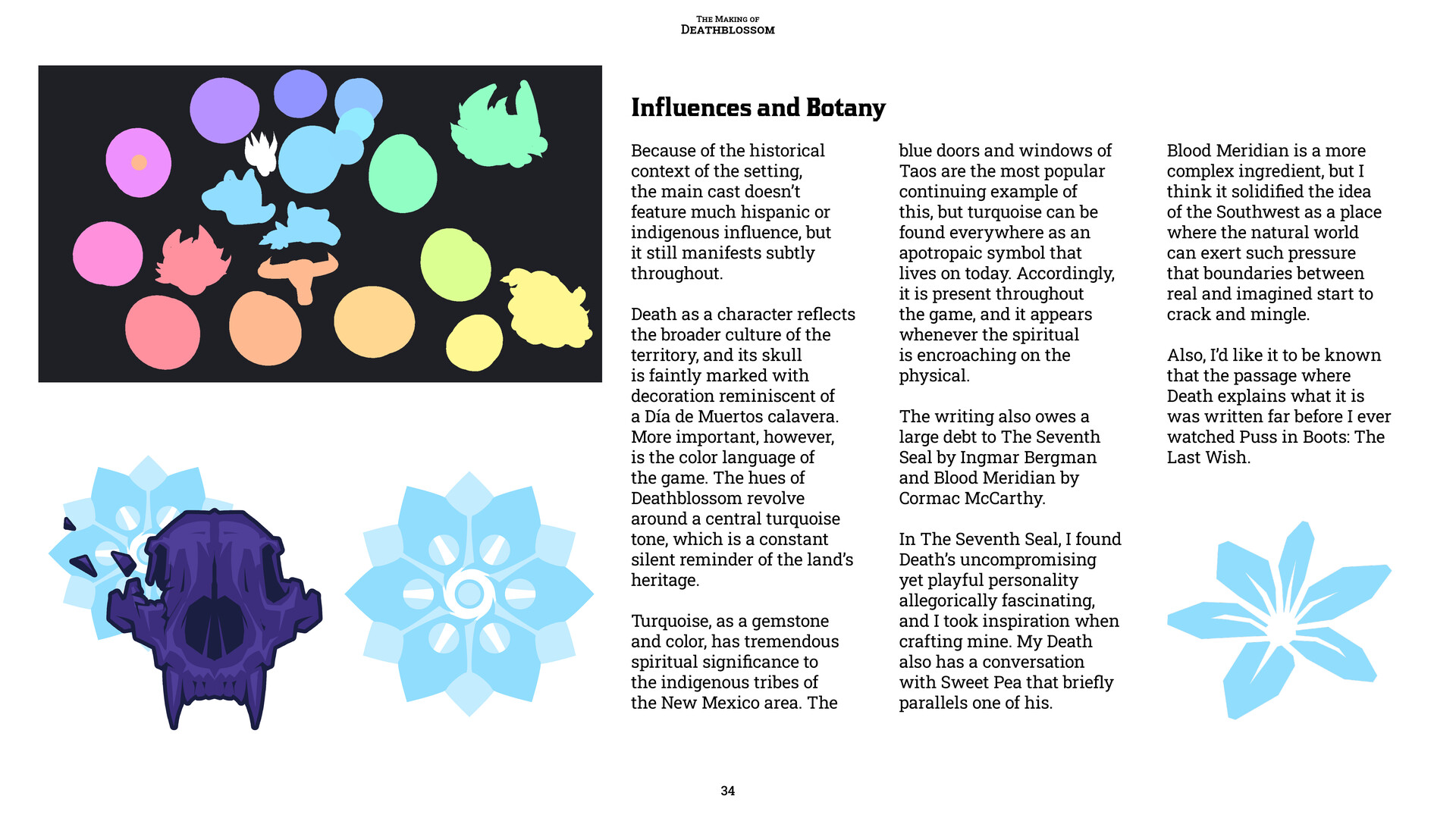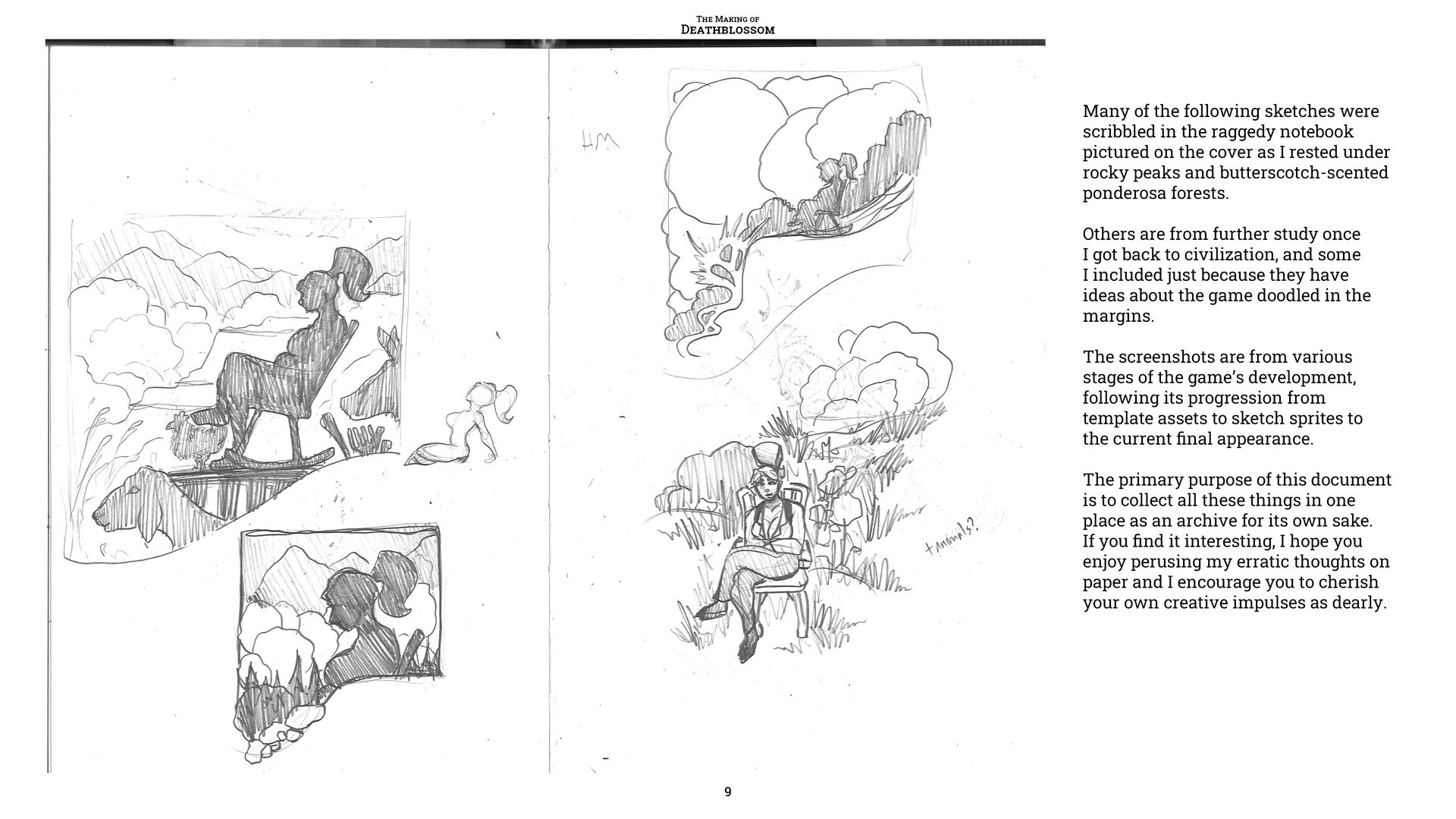 If you enjoyed the game and want to show your support, you can purchase this package to get access to The Making of Deathblossom, a 70+ page .pdf archive full of behind-the-scenes sketches, design documents, thoughts and inspirations.