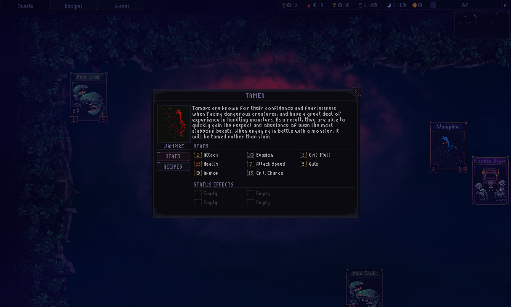 Discover powerful classes, each with its own unique playstyle. Tame monsters, brew potions and craft magic weapons to gain the upper hand in combat. Tailor your strategy around your undead army. Unique synergies arise depending on whether your minions are slow, sturdy juggernauts or swift, delicate fighters.