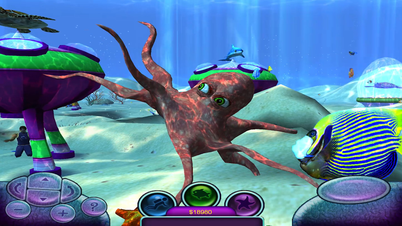 Your adventure begins deep beneath the ocean surface - sealife thrives as you create the underwater paradise of your dreams. Dive in and follow along as you swim with the seahorses, ride the turtles, feed the dolphins and save the whales! Immerse yourself in hypnotic sounds and dazzling lights in a world of clever humor and eye popping animation. Build the ultimate underwater scuba resort!