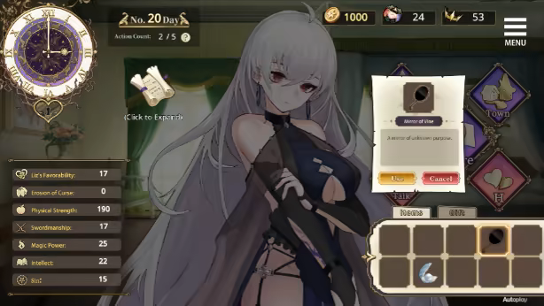 Political affairs can be resolved every five in-game days. Political affairs will affect the country’s value. Choose 【Castle】to train in the Castle. Choose【Town】to go to【Plaza】and take on missions to solve the citizens’ problems. Go to the suburbs for 【Adventure】 to find the required materials for missions and dishes. You may also get a chance to trigger an episode with Liz...?