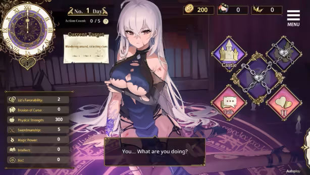 If you want to develop feelings for Liz, you can use 【Chat】 to know her better, or choose 【H】 and get some magic through naughty acts. Touching different parts of Liz’s body on the main page will trigger different reactions.