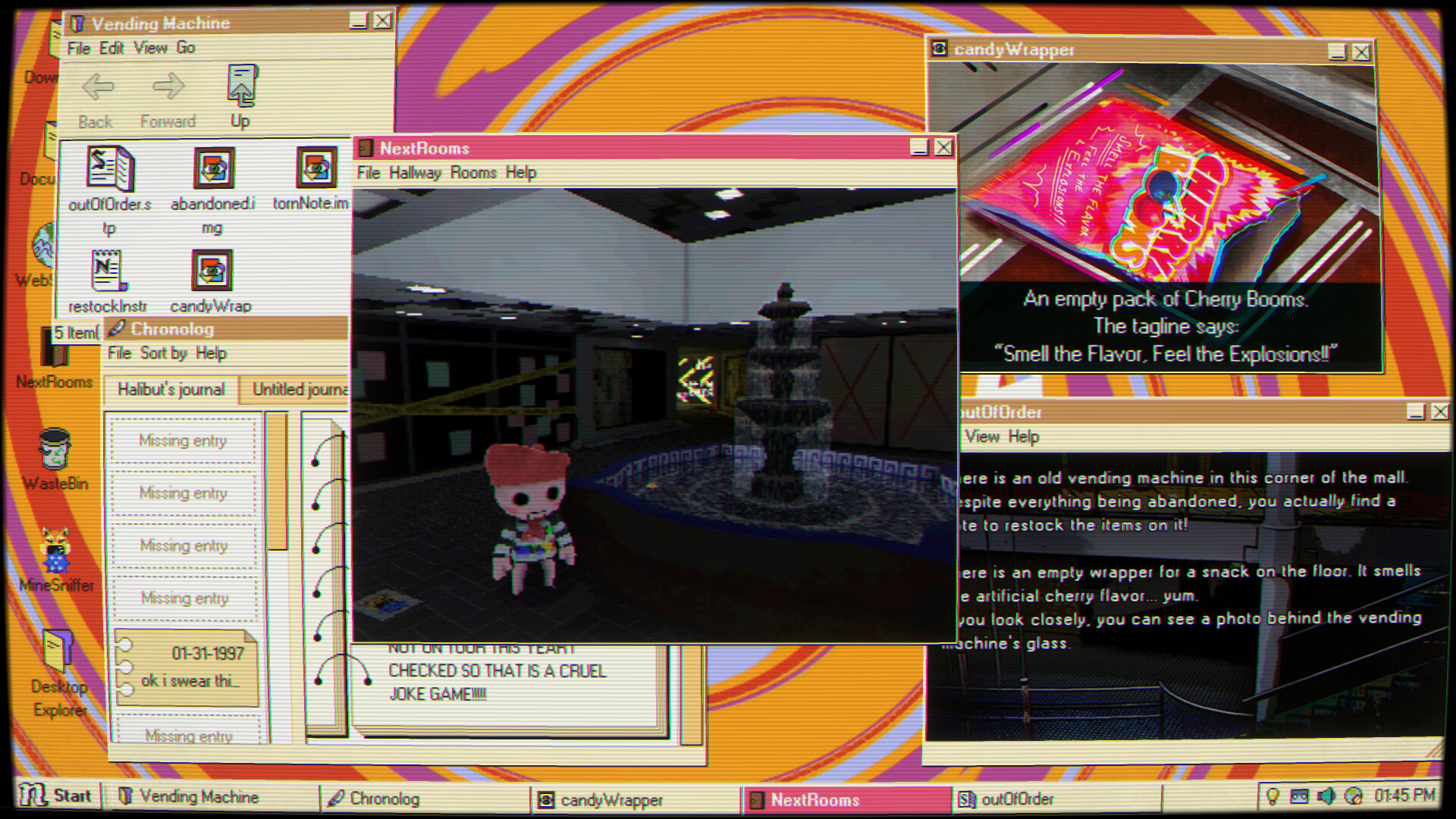 Your uncle has given you his old PC as living inheritance. To your surprise, it still turns on! Inside, a letter tasks you with investigating a missing person’s case along with a mysterious puzzle game named Desktop Explorer. You’ll learn that your uncle wasn’t the only one who used this computer before, and that the program inside it has a deeper role in this 90s atmospheric digital mystery.