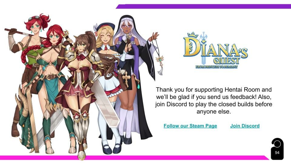 Wanna "Diana's Quest: From Princess to Peasant" H-scenes in your pocket and check the game's backstage?