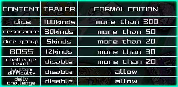 In numerous random challenges, besides the dice themselves, various resonances are waiting for your discovery. Attach suitable resonances to the dice to unleash their stronger powers! Later in each game, you will also unlock the forging workshop, relying on abilities like "copy" and "delete" to further strengthen your control over dice sets. Destiny is unpredictable, whether it's selecting dice, matching resonances, or using the workshop, every step you take could change the course of the entire game.