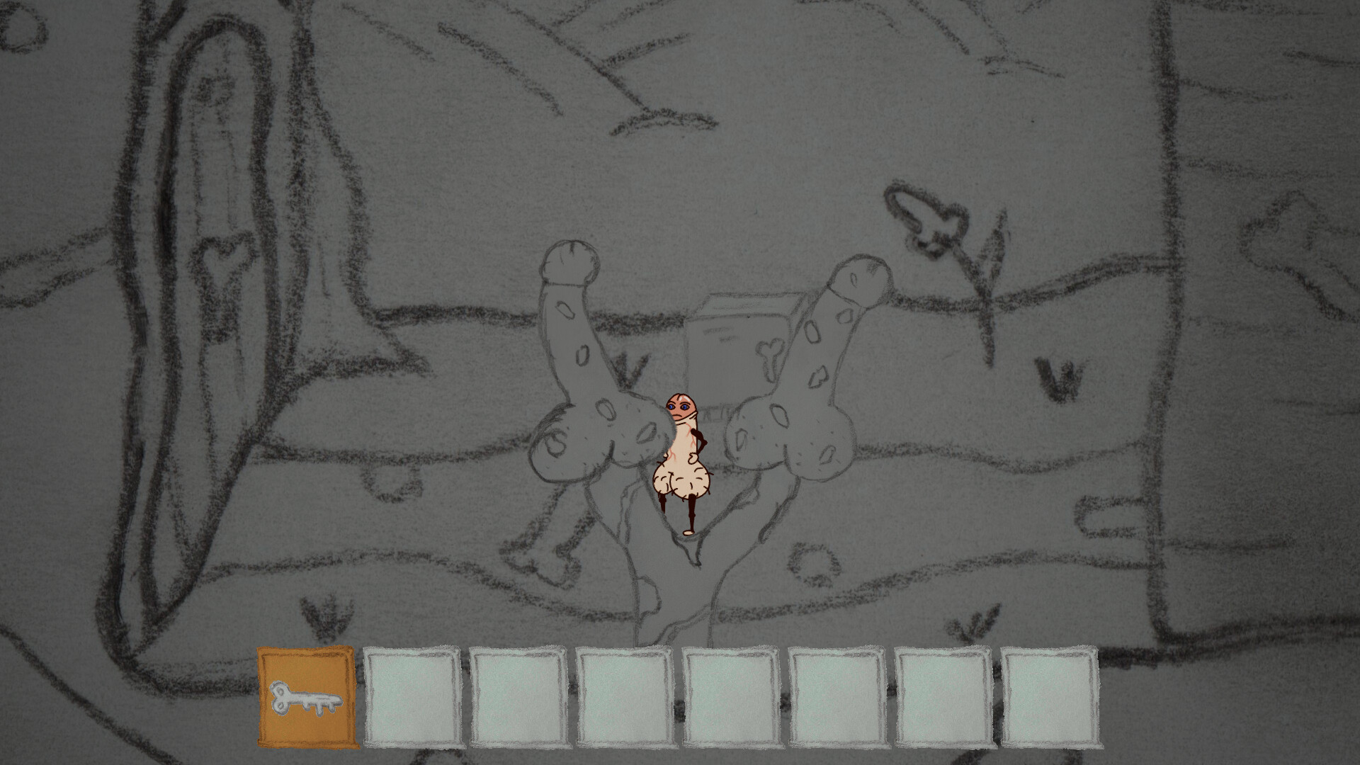 Features of the game:- Drawing, namely everything in the game, except for the game characters, is drawn with a pencil by hand and sometimes with a red felt-tip pen, and later scanned.