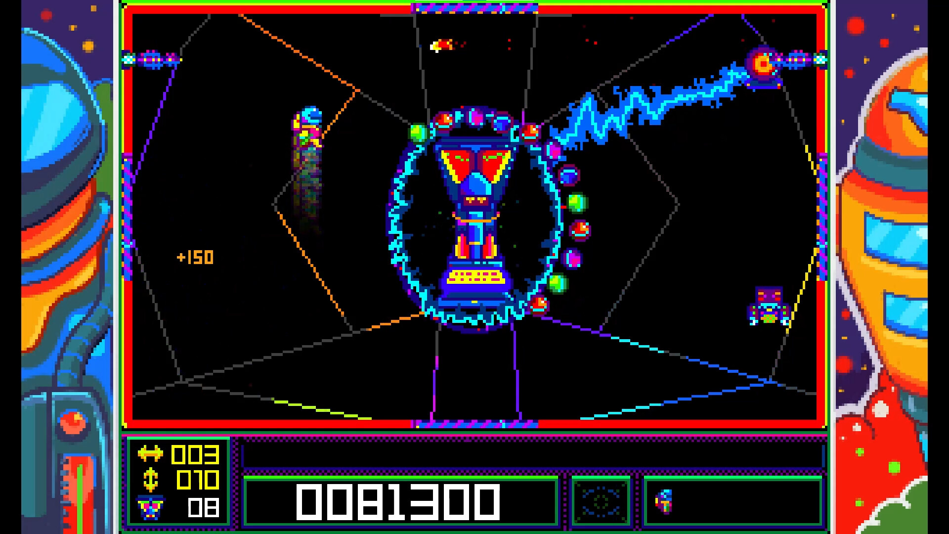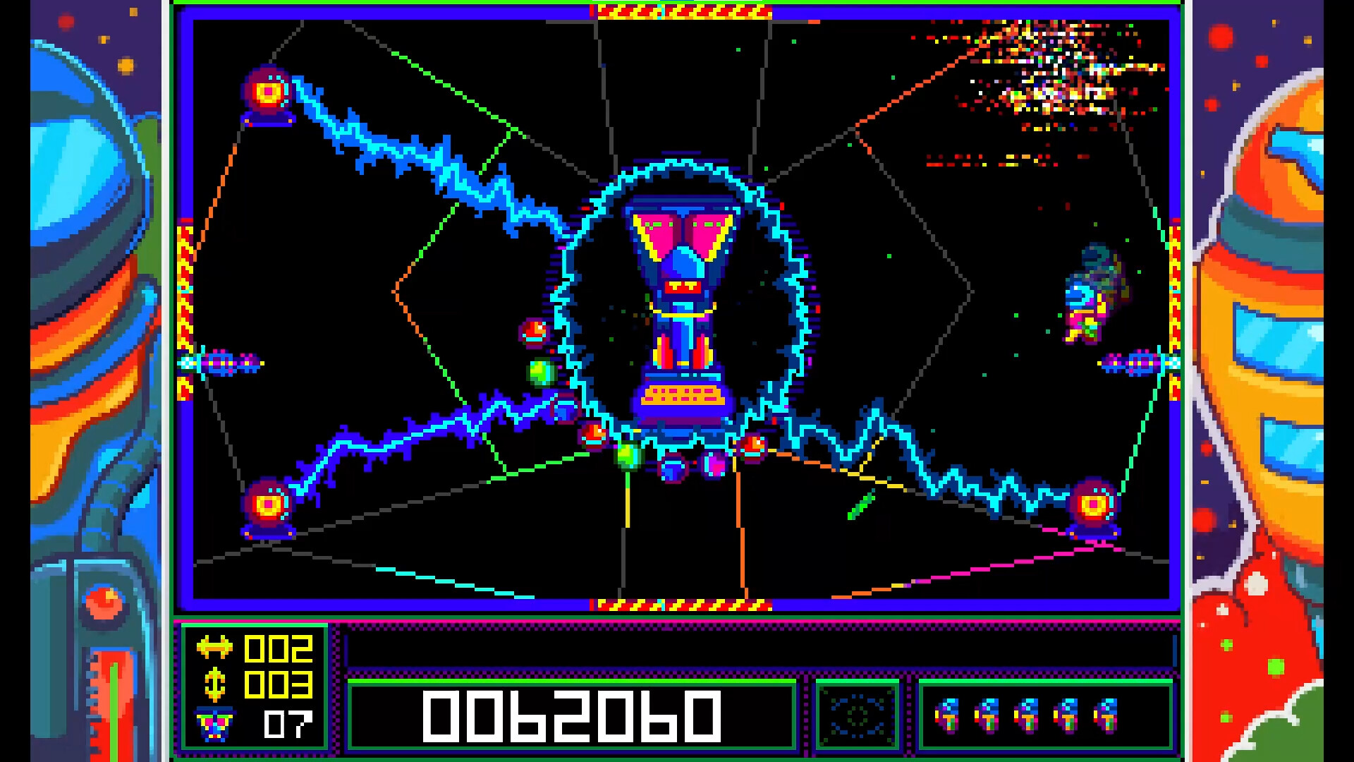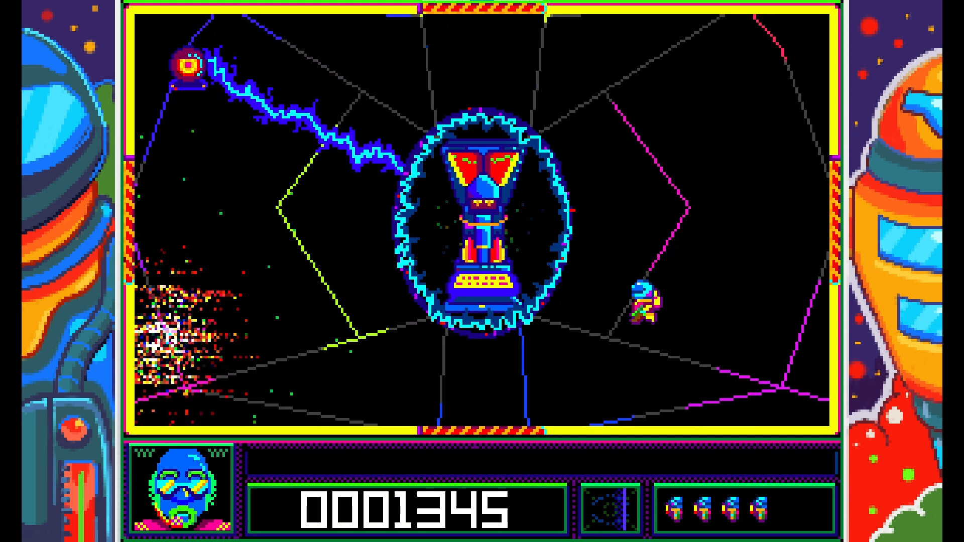 Beautiful, chunky pixel art graphics with a psychedelic slant harking back to the old 8-bit systems.