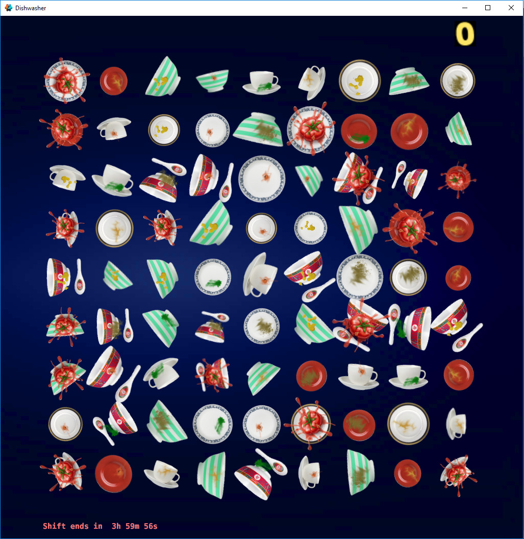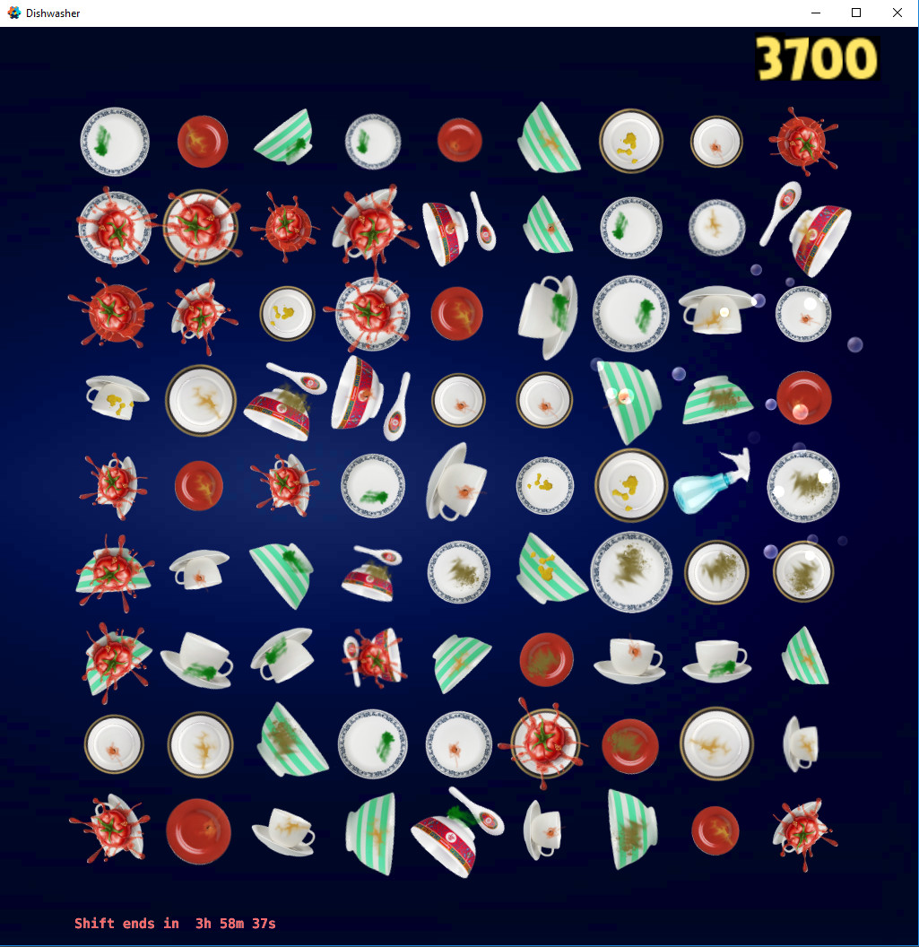 Finally, a game about washing dishes professionally! Dishwasher is a unique take on the classic link puzzle game. Wash dishes and earn rewards, to increase your best score! Cute. comedic and fun for simple enjoyment for hours and hours! Create long links to reveal power-ups and wash dishes more efficiently. Better hurry, it's four hours before your shift ends! You might make your boss mad if you don't get them done in a hurry!