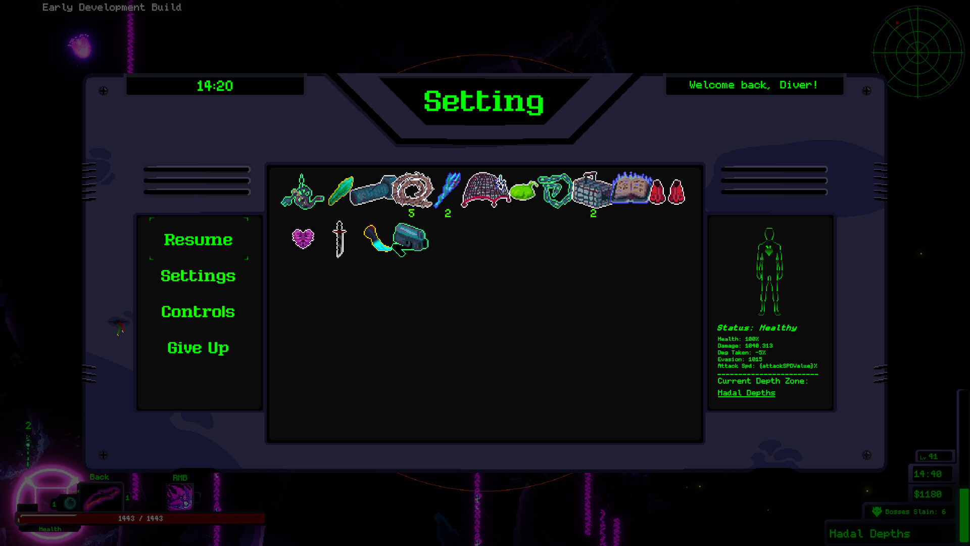 Dive The Depths is an action-roguelike set beneath the ocean's surface. As a humble diver, you must navigate the world filled with bizarre sea creatures, submerged ruins, and forgotten histories. Can you conquer the depths and unravel the secrets that hidden beneath the waves?