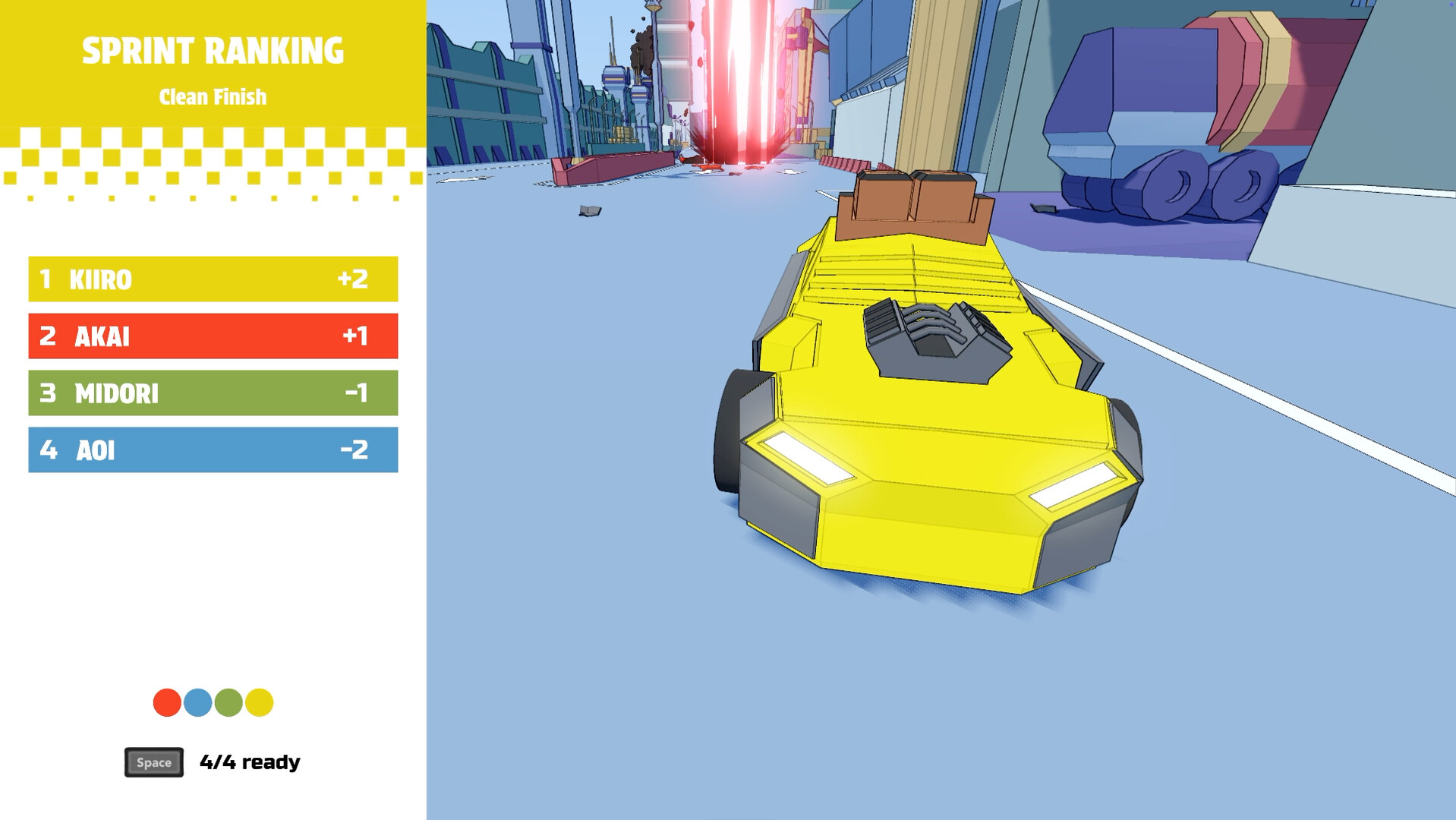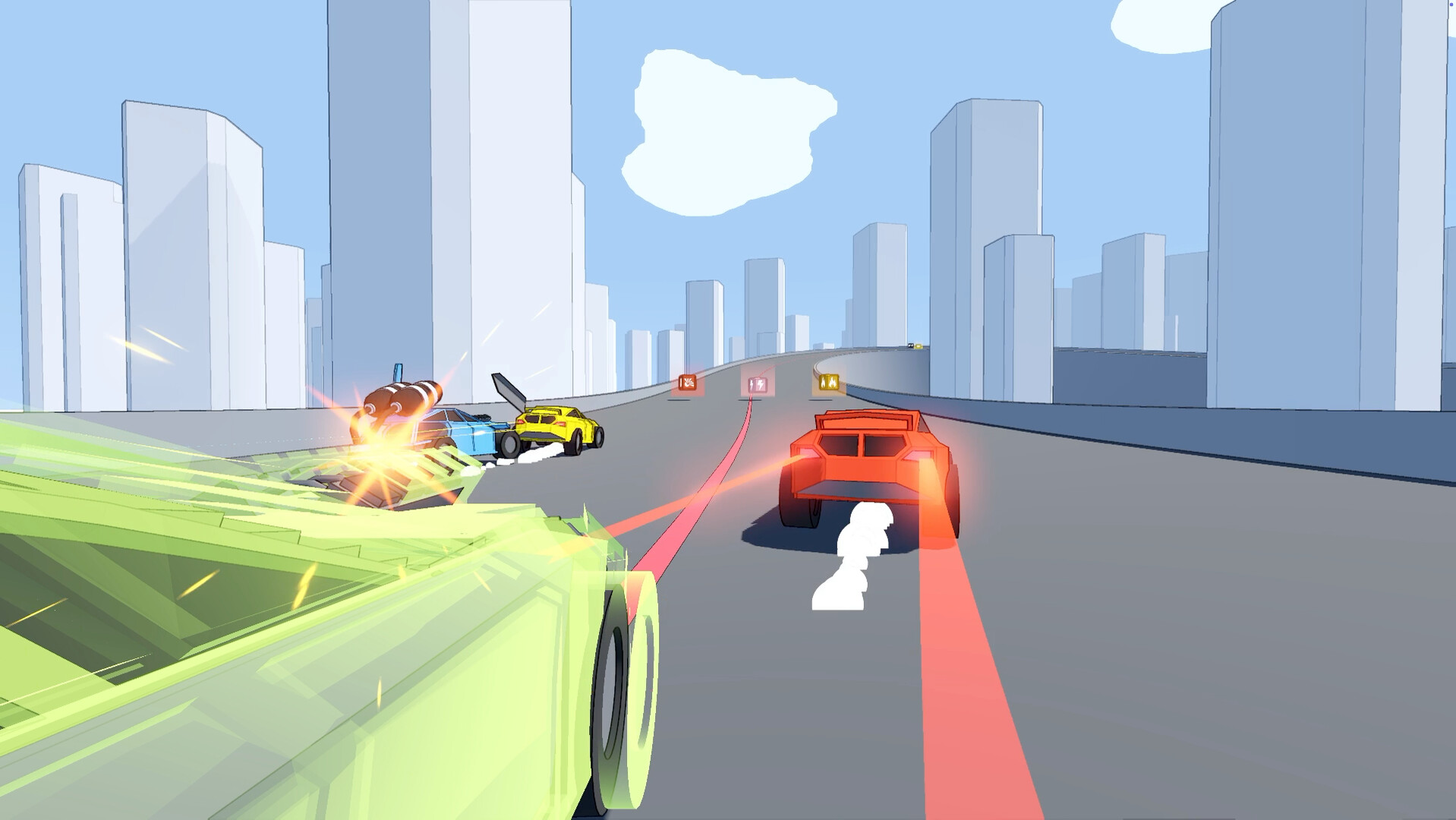 Even after elimination, players can still influence the outcome by launching homing missiles at the remaining racers, impacting the race and shaping victory or defeat!