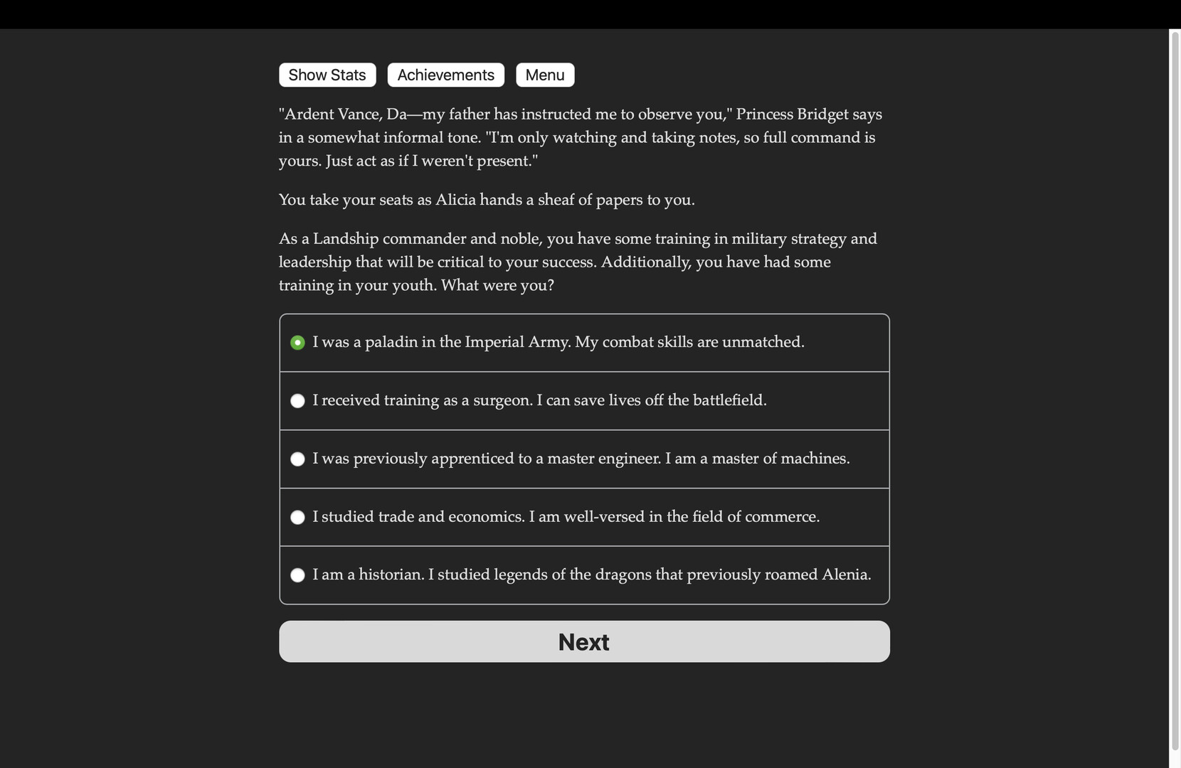 Dragon of Steelthorne is a 170,000-word interactive novel by Vance Chance, weaving together story, city management and combat in a unique take on choice-based Interactive Fiction. Customize the level of challenge with four difficulty settings. It's entirely text-based—without animation or sound effects—and fueled by the vast, unstoppable power of your imagination.