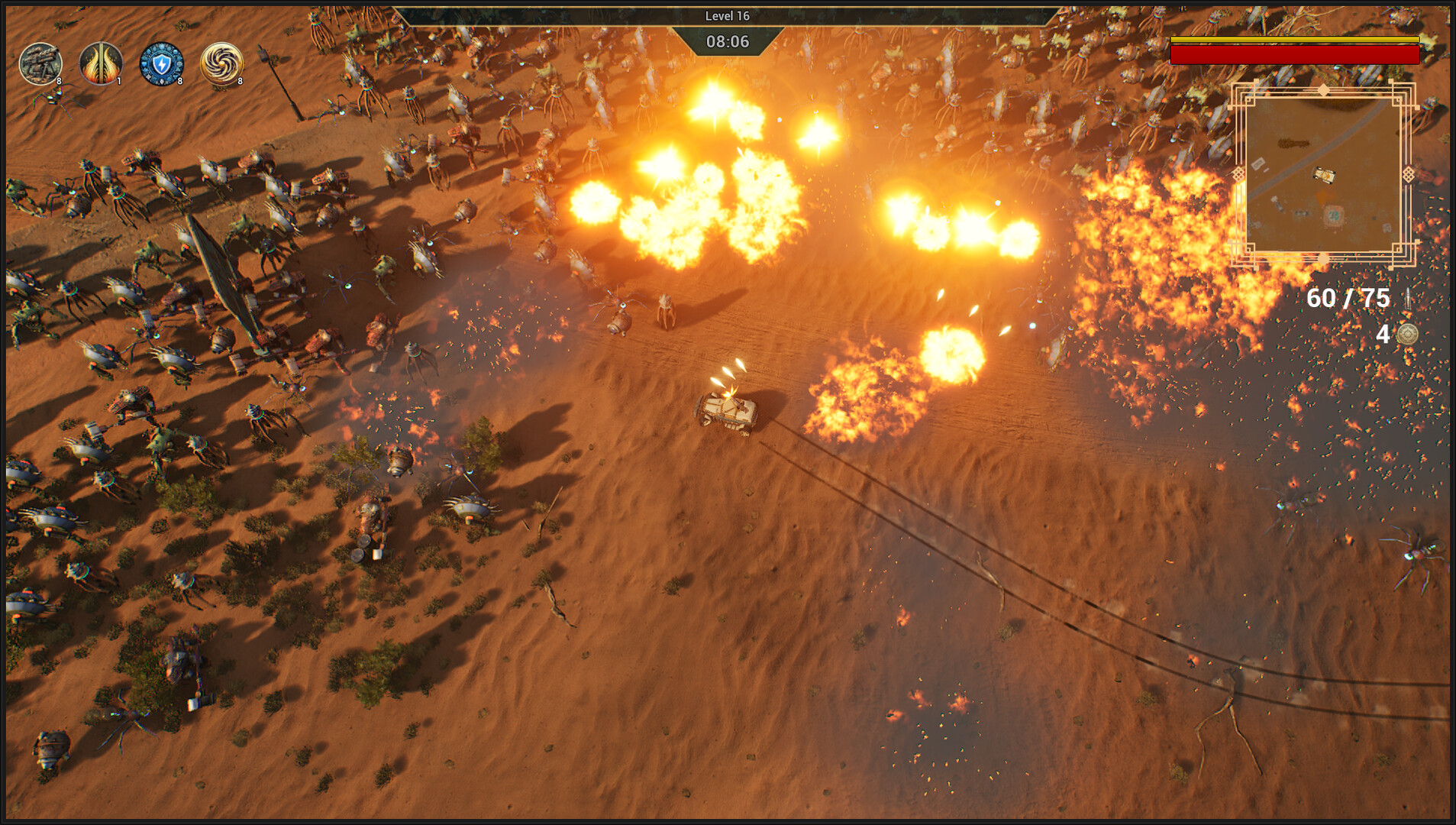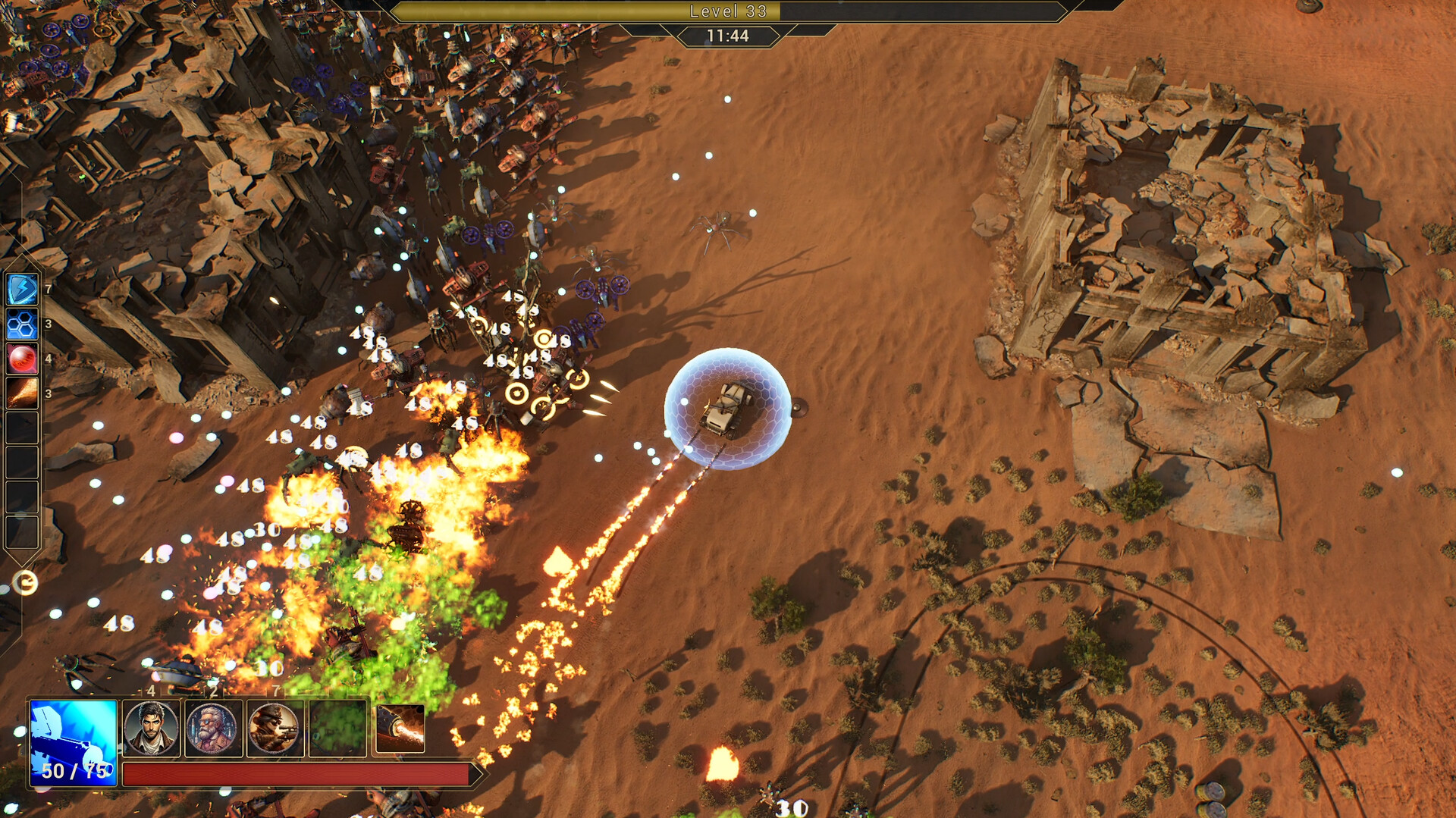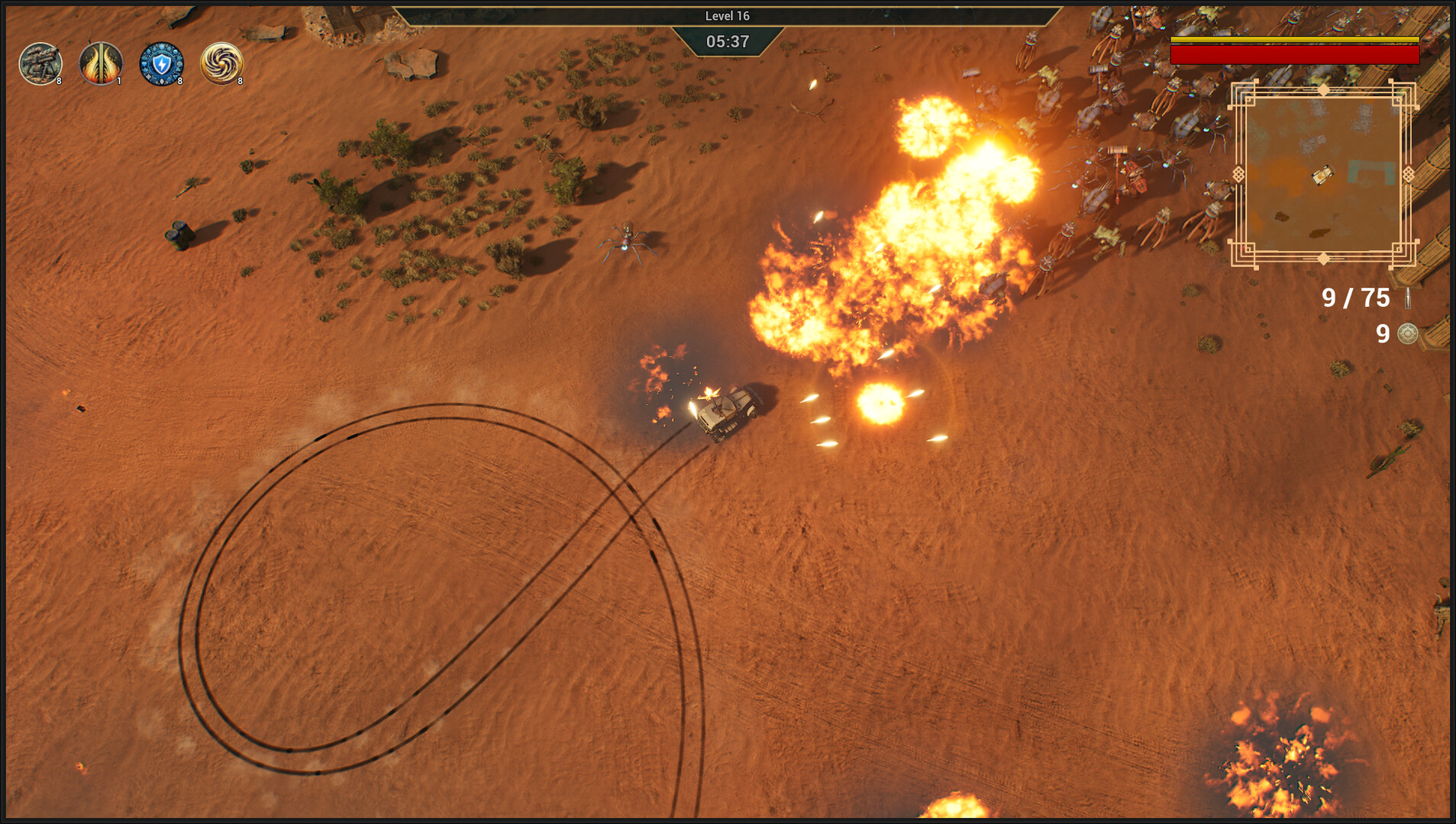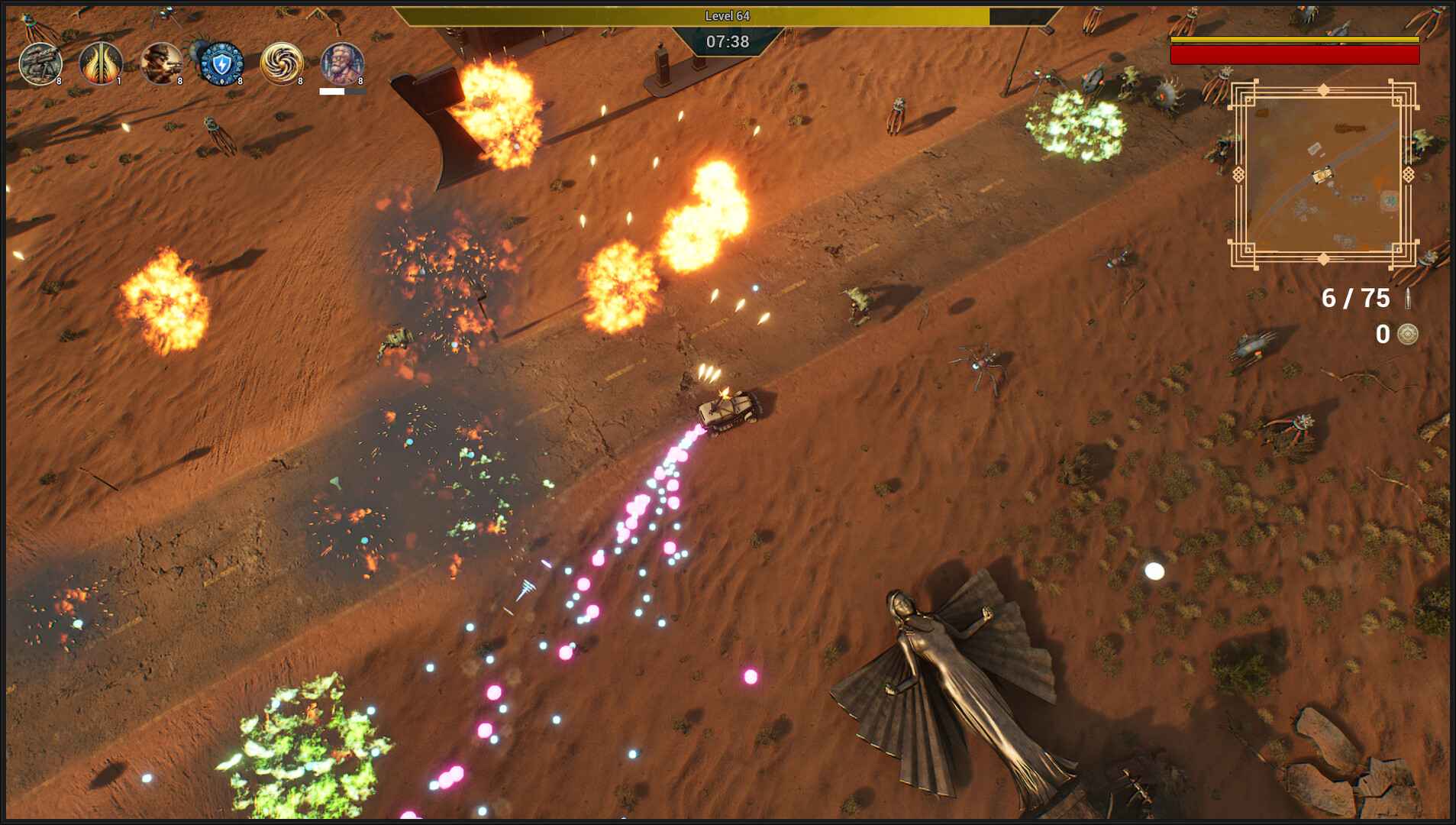 Recruit a motley crew of specialists to give your suped-up joyride more powerful weaponry and collect spare parts to unlock devastating power-ups. Build effective synergies to turn yourself into an unstoppable combat vehicle!