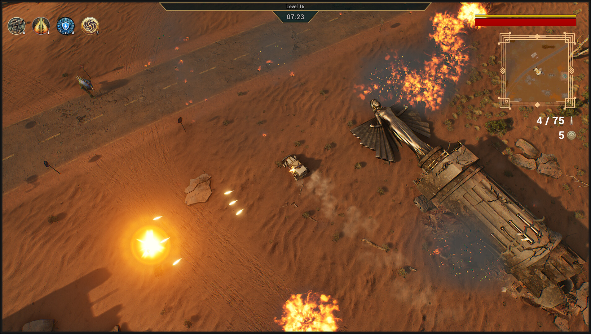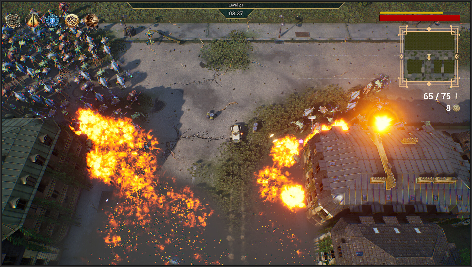 Drift, ram and unleash a barrage of firepower as you experience an intense combination of tactical driving and explosive combat. Explore decaying cities inspired by real-world metropolis where danger lurks at every street corner. Whether you’re charging into the swarms, evading enemy fire, or unleashing devastating attacks, embrace the chaos in style. It’s survival of the fastest and strongest!