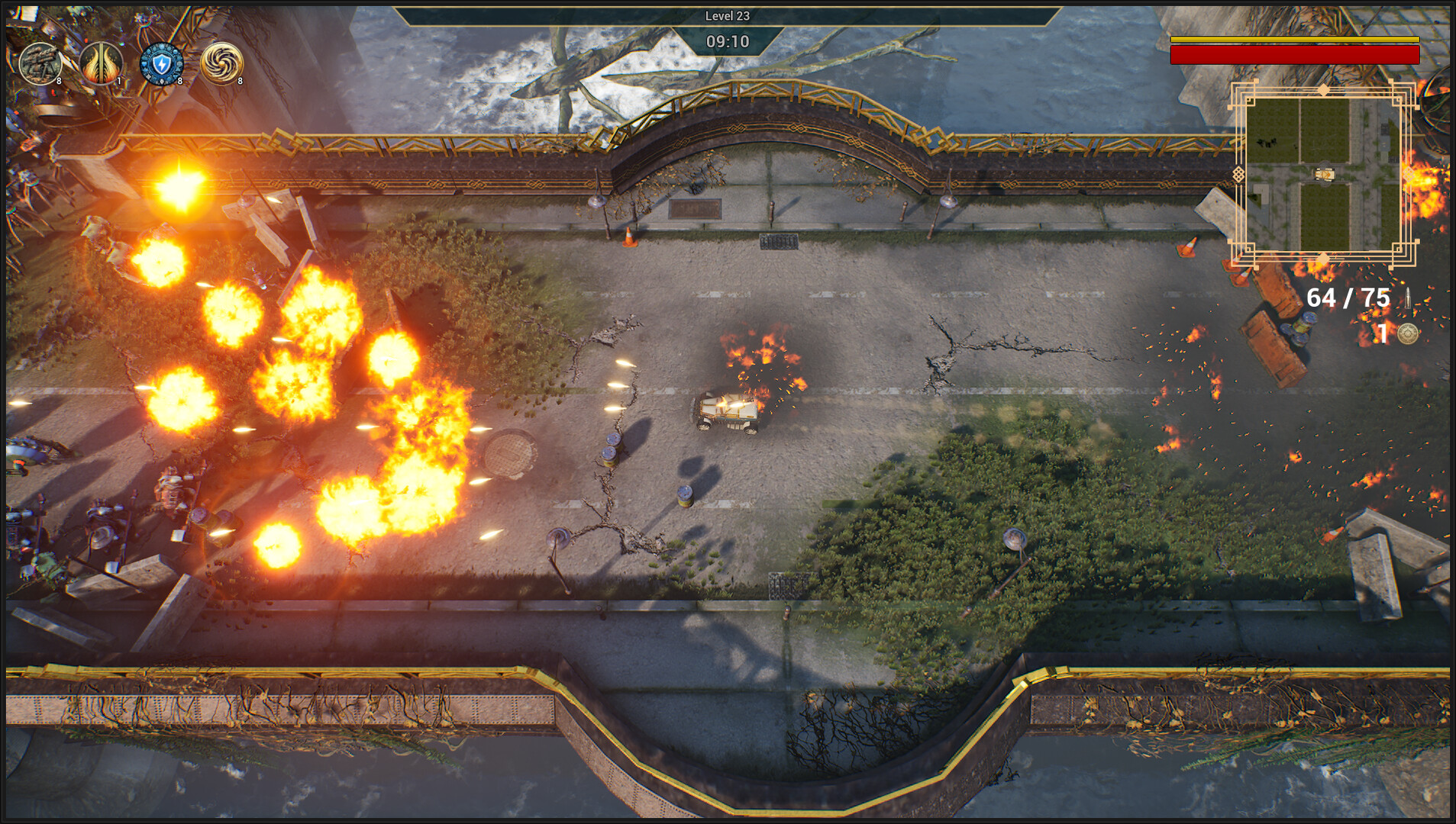 High-Octane Combat: drift, ram, and blast through endless waves of steampunk enemies in intense, chaotic battles.