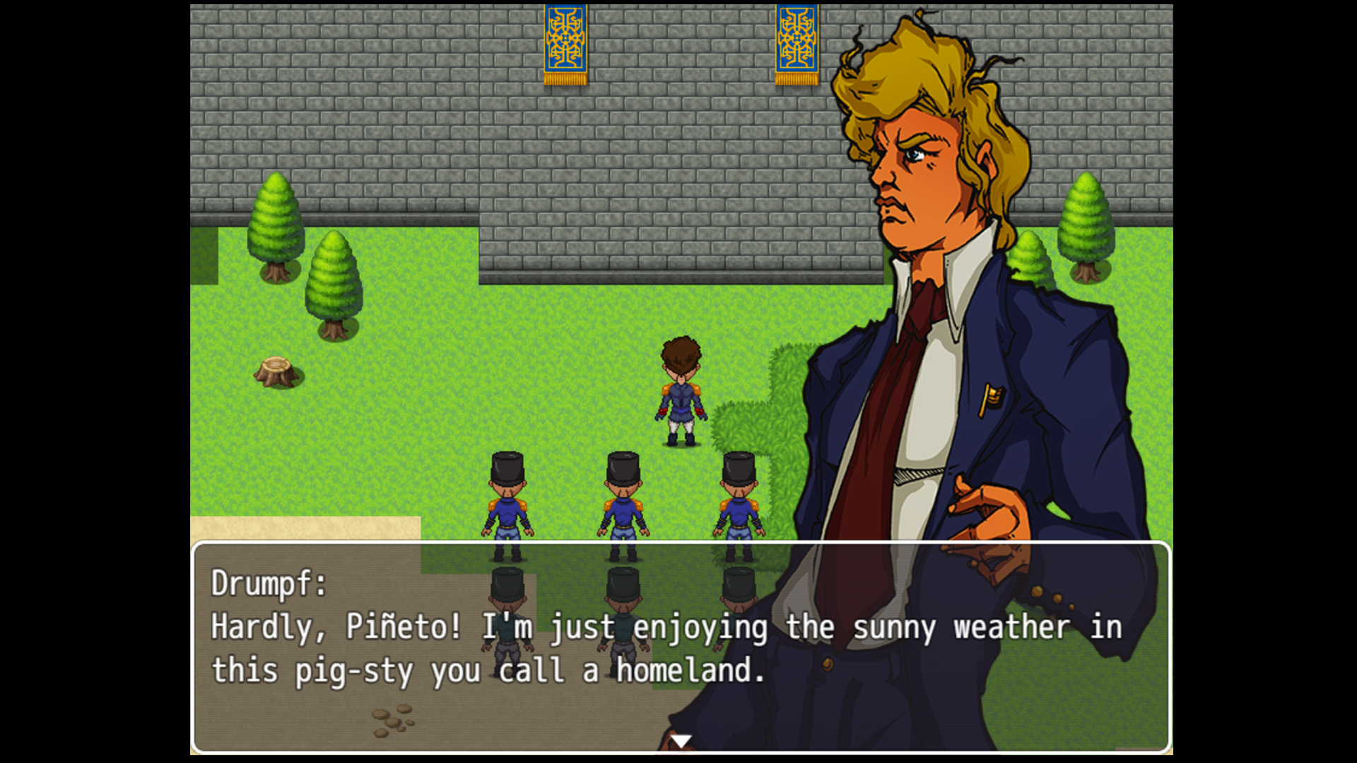 Drumpf: Rise Up, Libertonia! is an erotic 2D RPG set in the fictional land of Amerika.