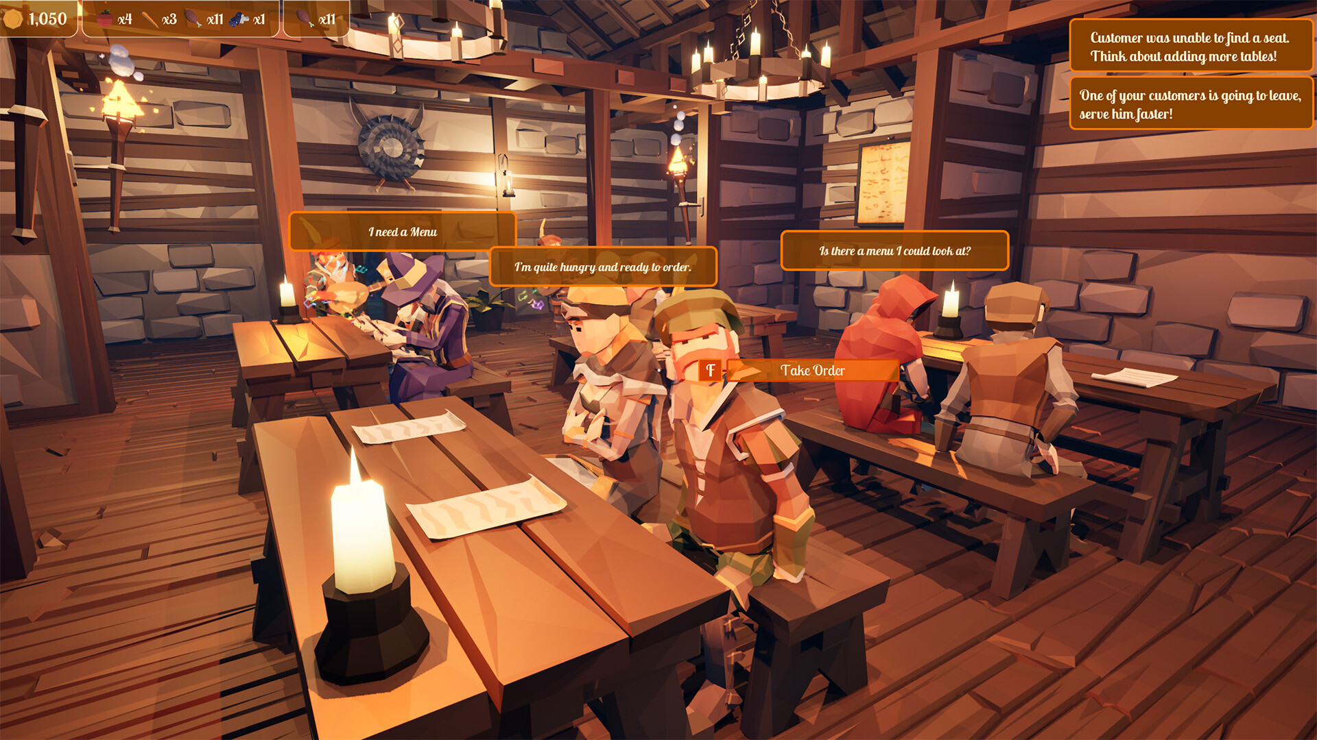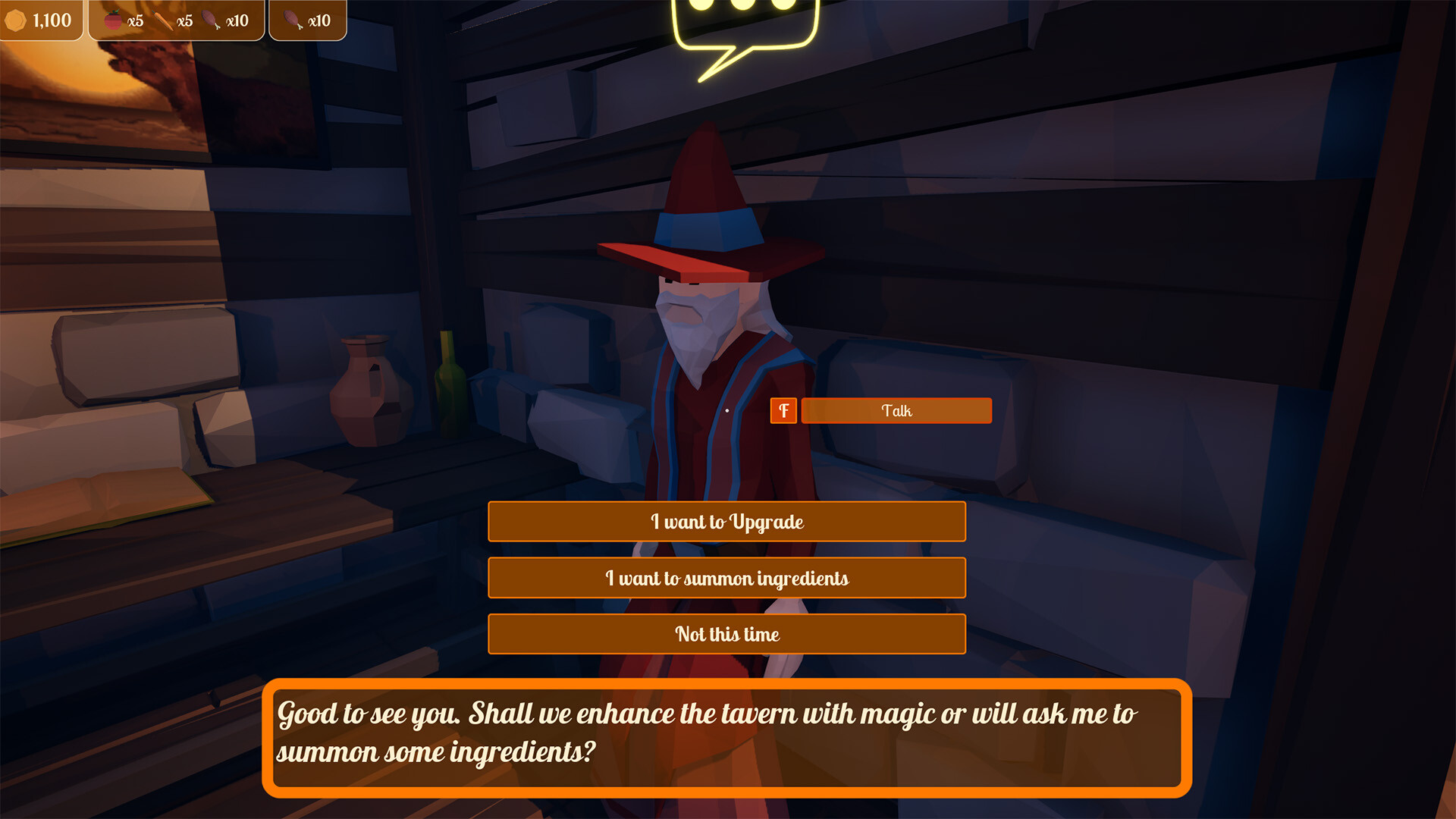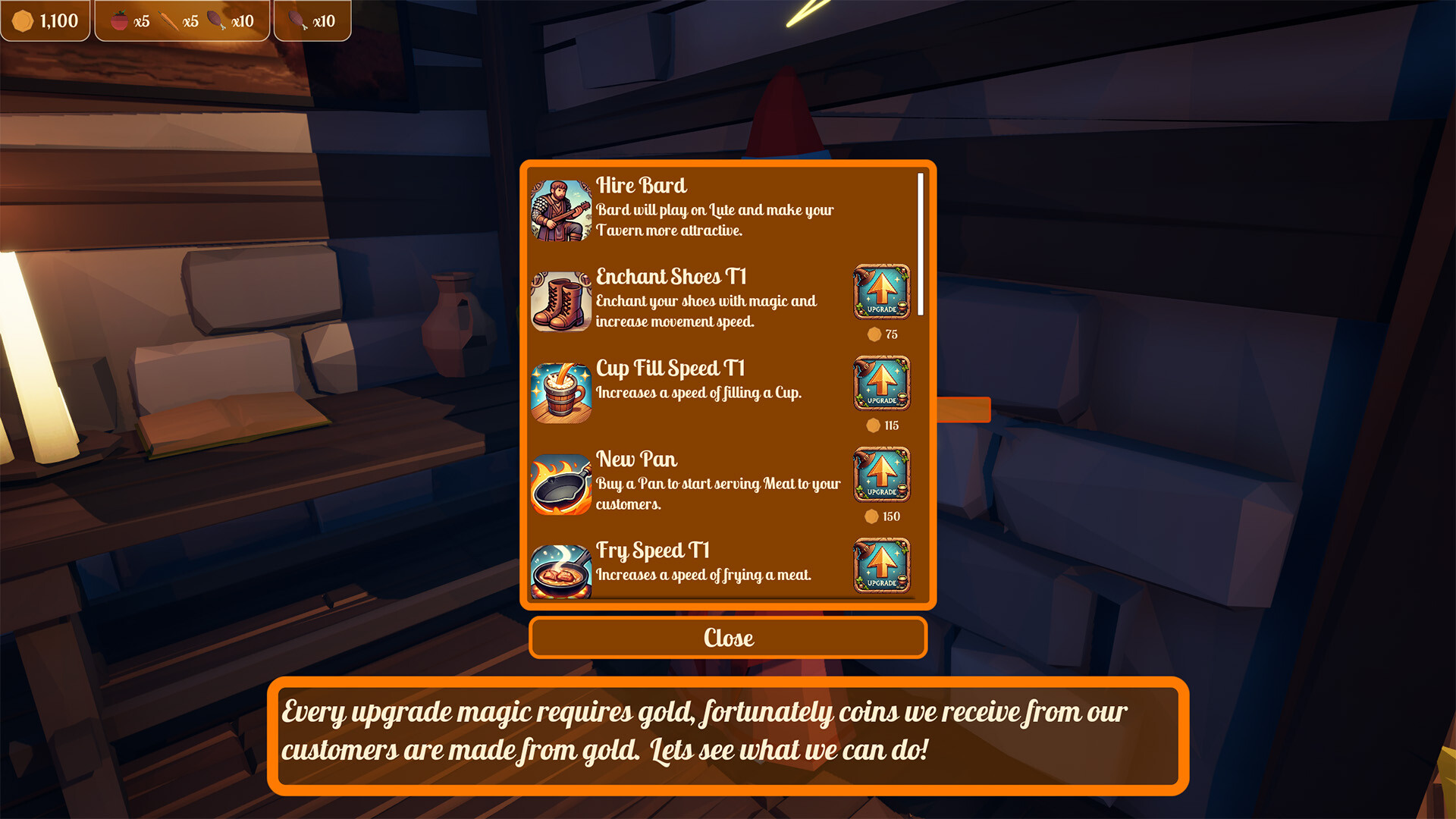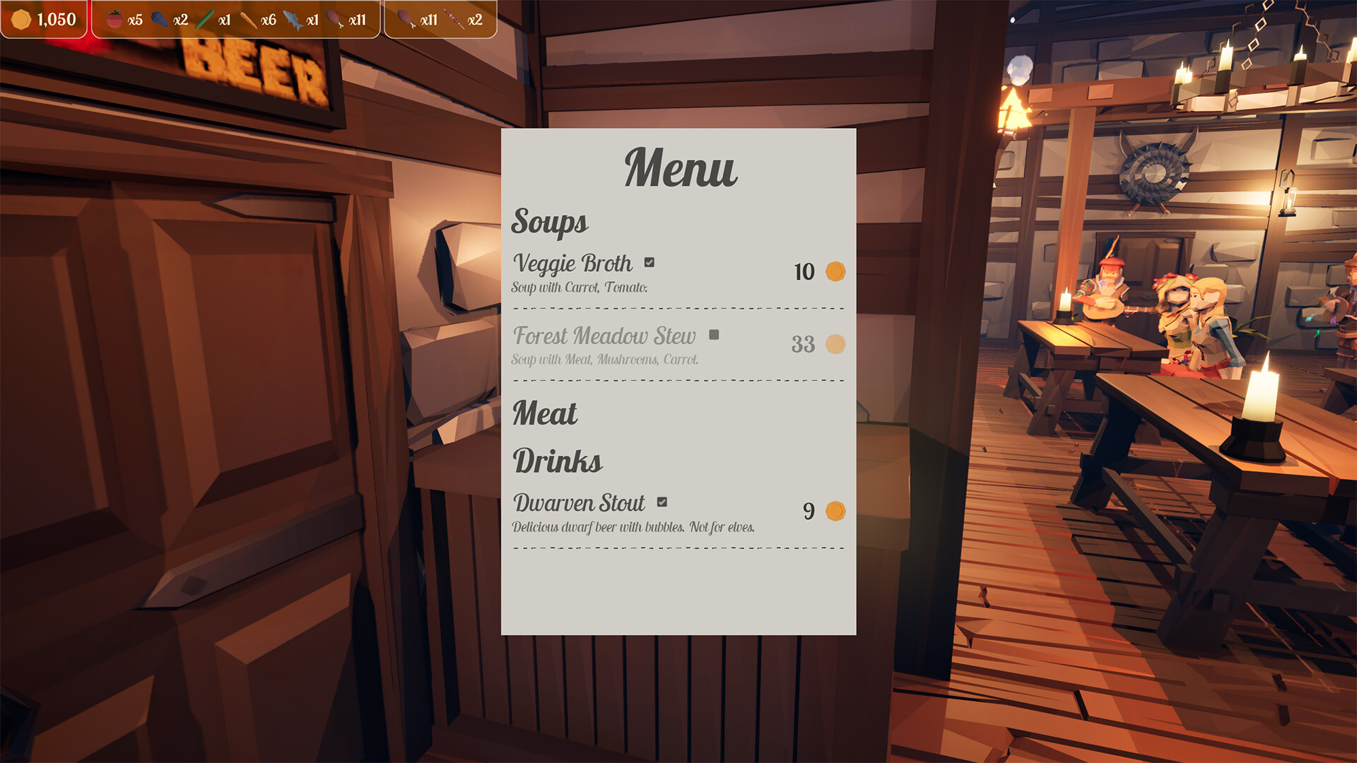 Welcome to the fantasy tavern simulator where you manage resources, cook meals, and serve unique customers. Unlock recipes, upgrade your inn, and keep your tavern clean.