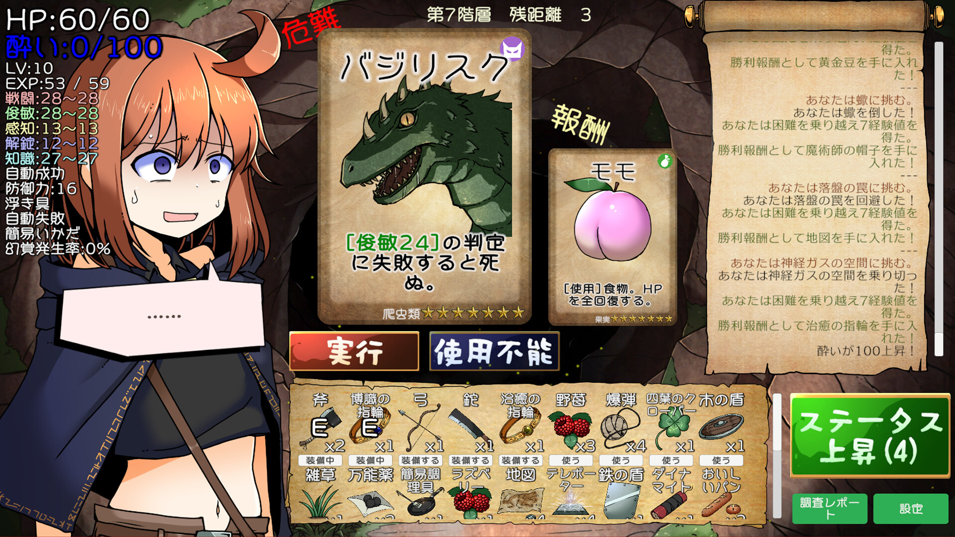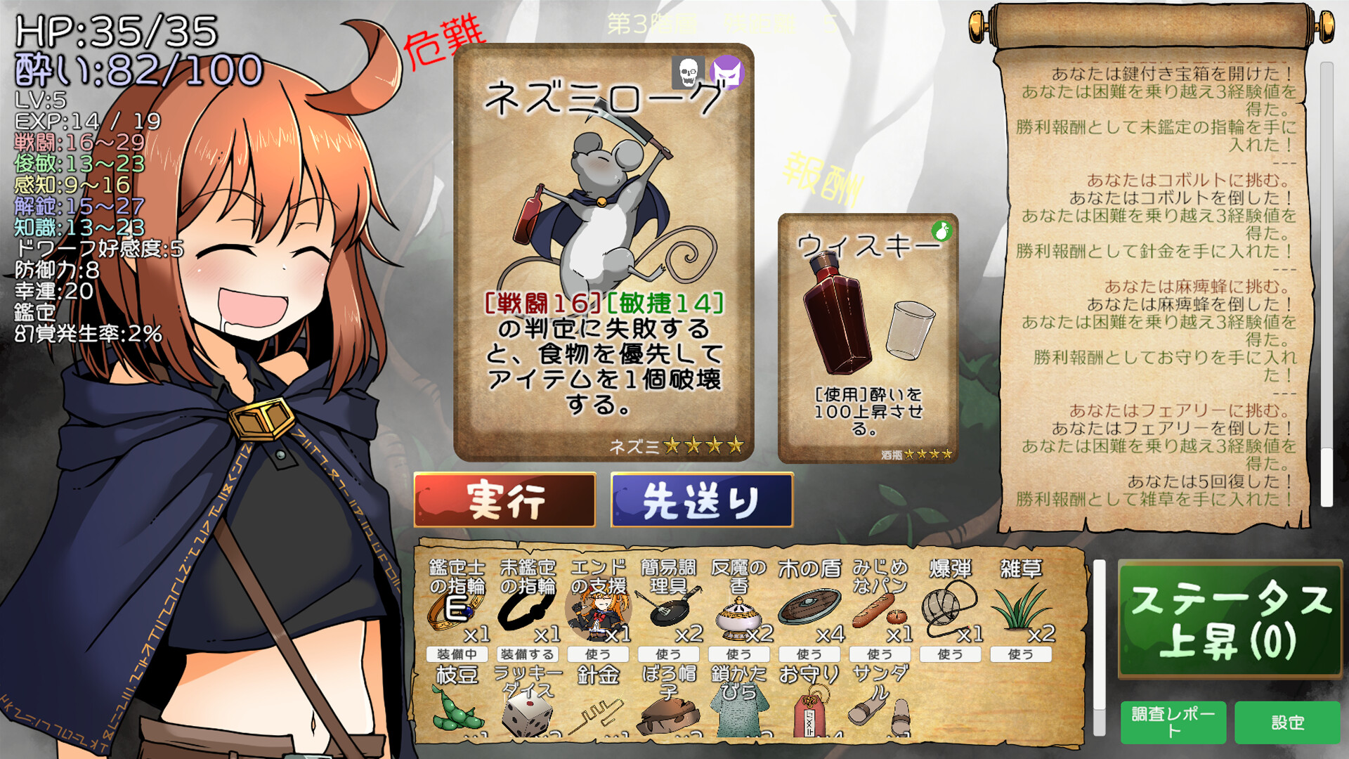 The best part is that the characters in this game get stronger the drunker they become! The only way to step foot into the all-too-risky dungeons is to do so with intoxicated abandon! To top things off, the drunker you become, the less you can tell what's real and what's not, and you may even hallucinate. Your pet dog Odysseus that appears before you may very well be a fiendish demon. Please drink responsibly.
