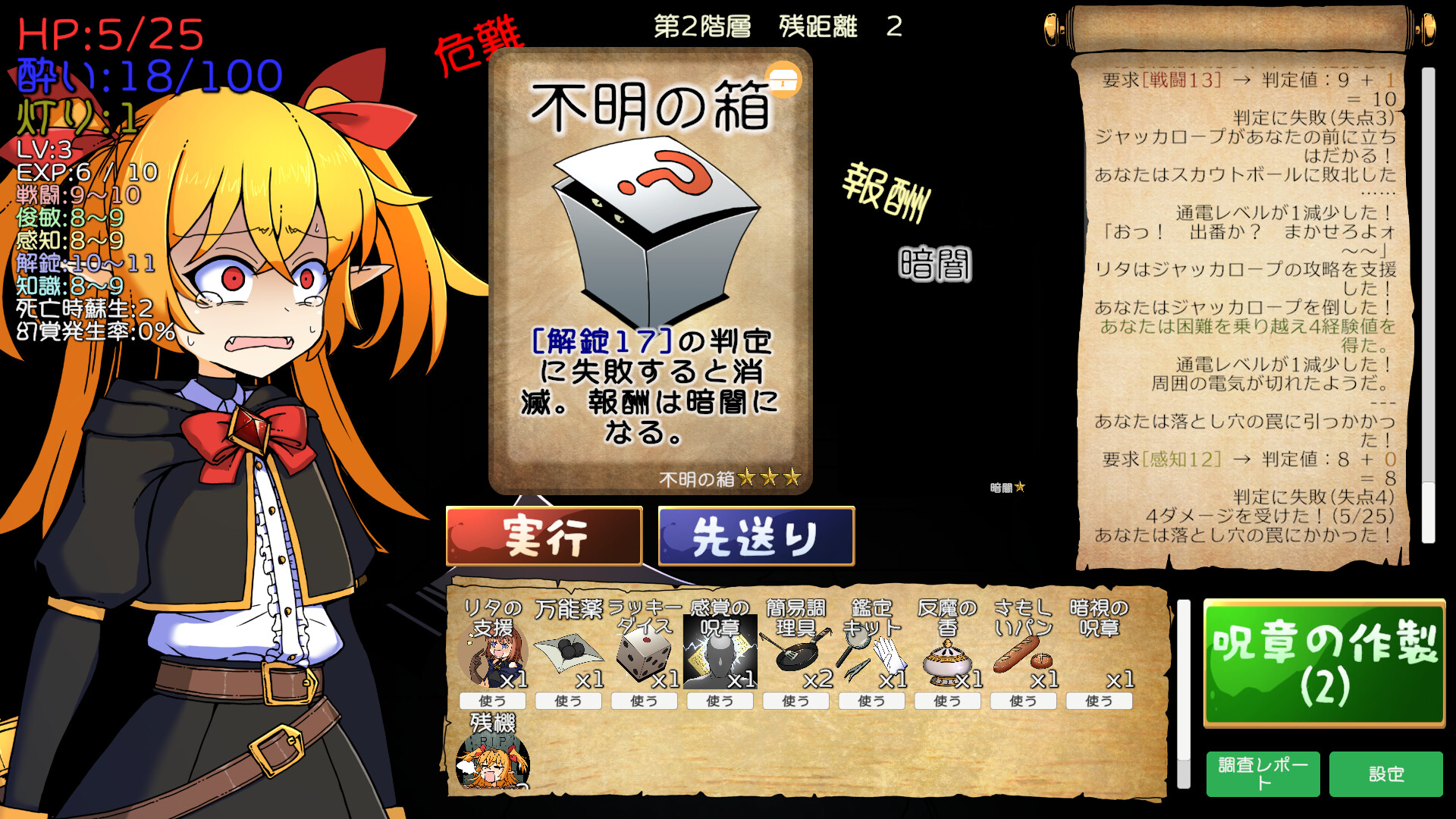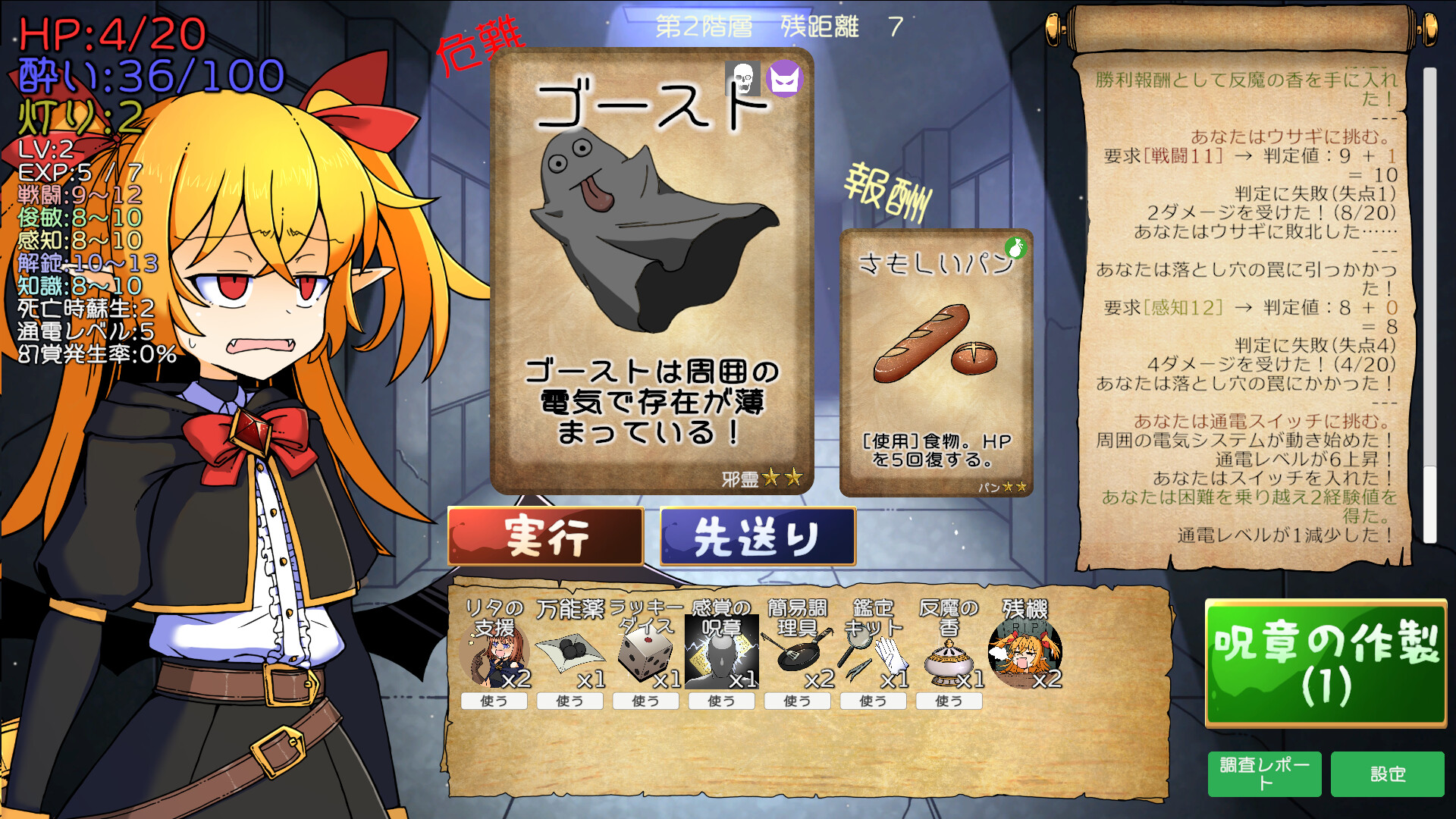 To make it to the vampire's castle, you must conquer several dungeons, each with its own traps, terrain, and ferocious demons lying in wait. A frontal assault is simply too reckless. Lita takes advatage of her Wind Cloak while Endo posesses the ability to turn into fog, allowing both to evade the perils of their adventure. However, what you evade only comes back stronger on the next floor. Whether you are prepared to face the inevitable trouble is up to you.
