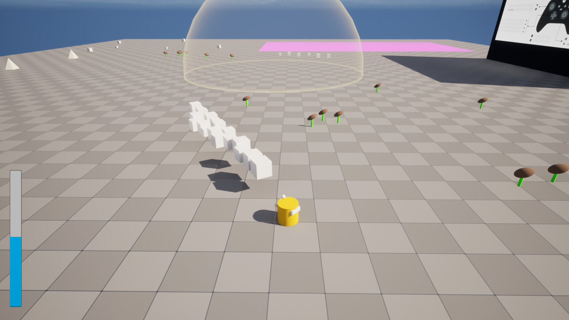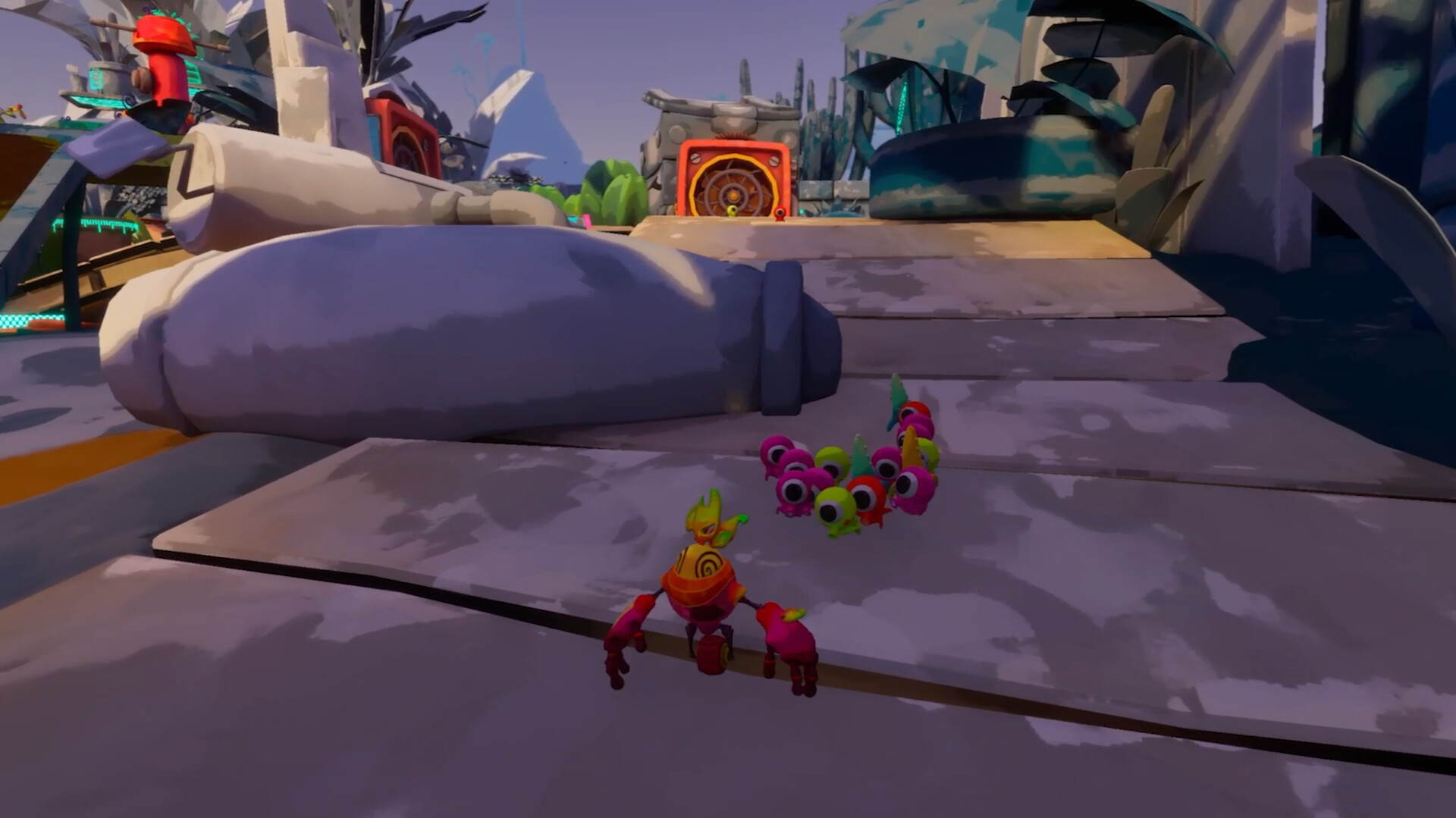 Jump, dash and slide through a futuristic garden in Palette Cleanser, cute 3D platformer focused on smooth movement and an optimistic vibe! Control a tiny robot trying to restore the color palette of its garden. Capture the alien invaders to activate paint sprinklers and make the garden alive again.