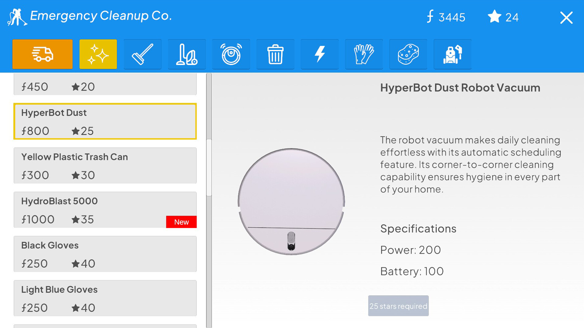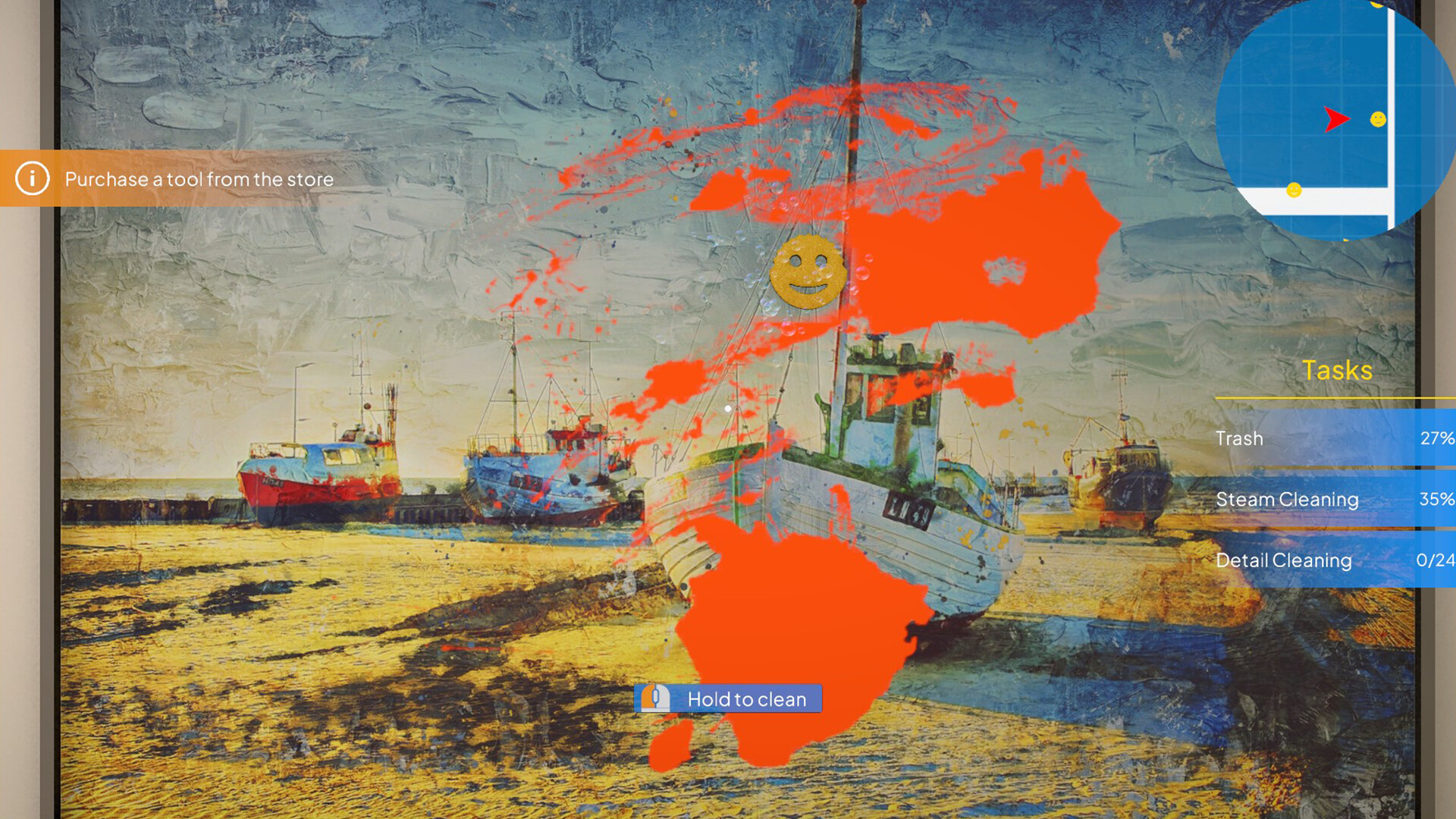 Complete jobs to earn money and unlock new tools that strengthen your cleaning arsenal.