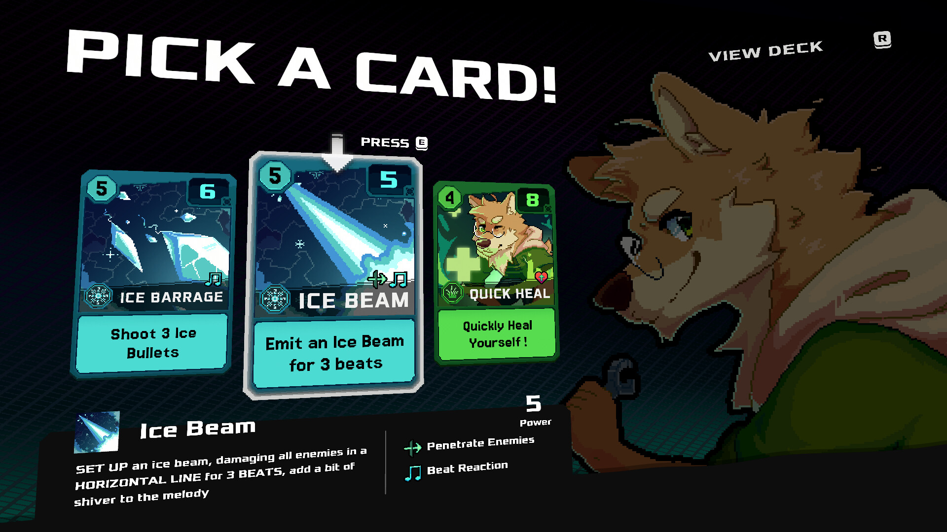 A Roguelike Grid-based deck builder where music and beat are your strategies. Expand your deck as you defeat the enemies you encounter along the way, and fuel your attack with your rhythm!... And there are DOGs!