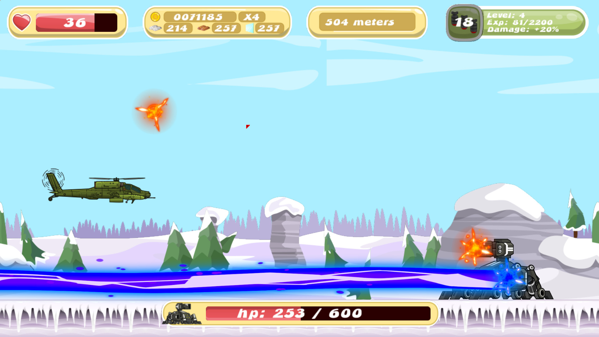 There are 3 modes, underwater mode, naval mode and aerial mode, each with submarines, warships, helicopters, weapons, and abilities to buy.