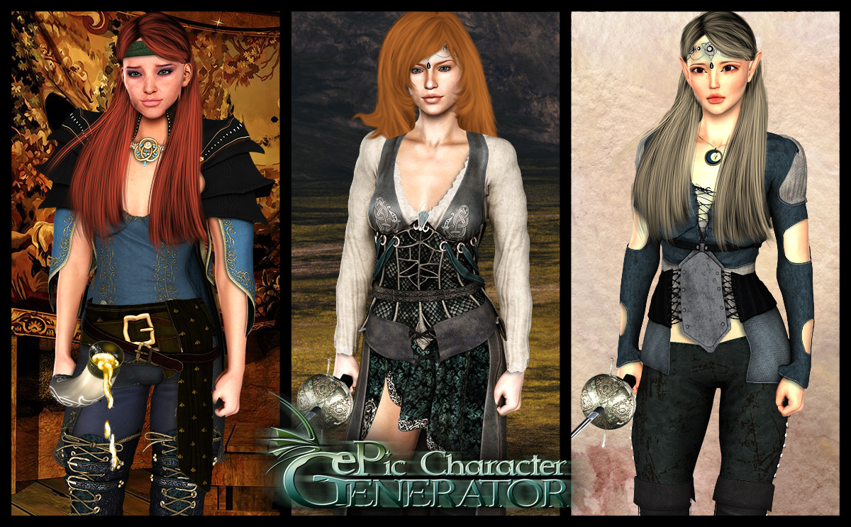 This Fantasy themed package can be used to further customize your Female Adventurer characters, set in various middle age and early modern age settings.