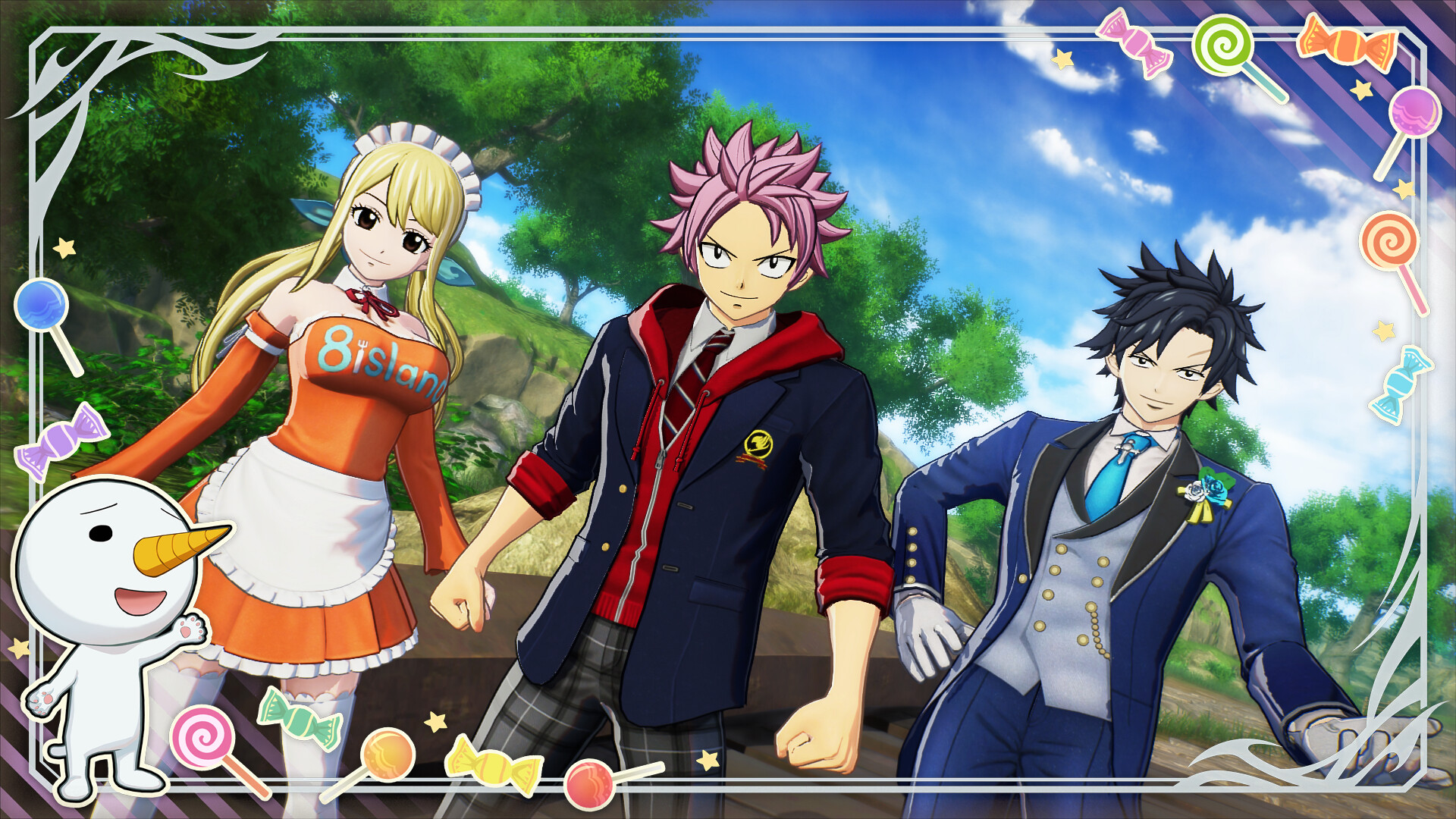 A set of the "Luxury Restaurant," "Happy Wedding," and "Fairy School" outfits for each of the 10 playable characters, for a total of 30 outfits!