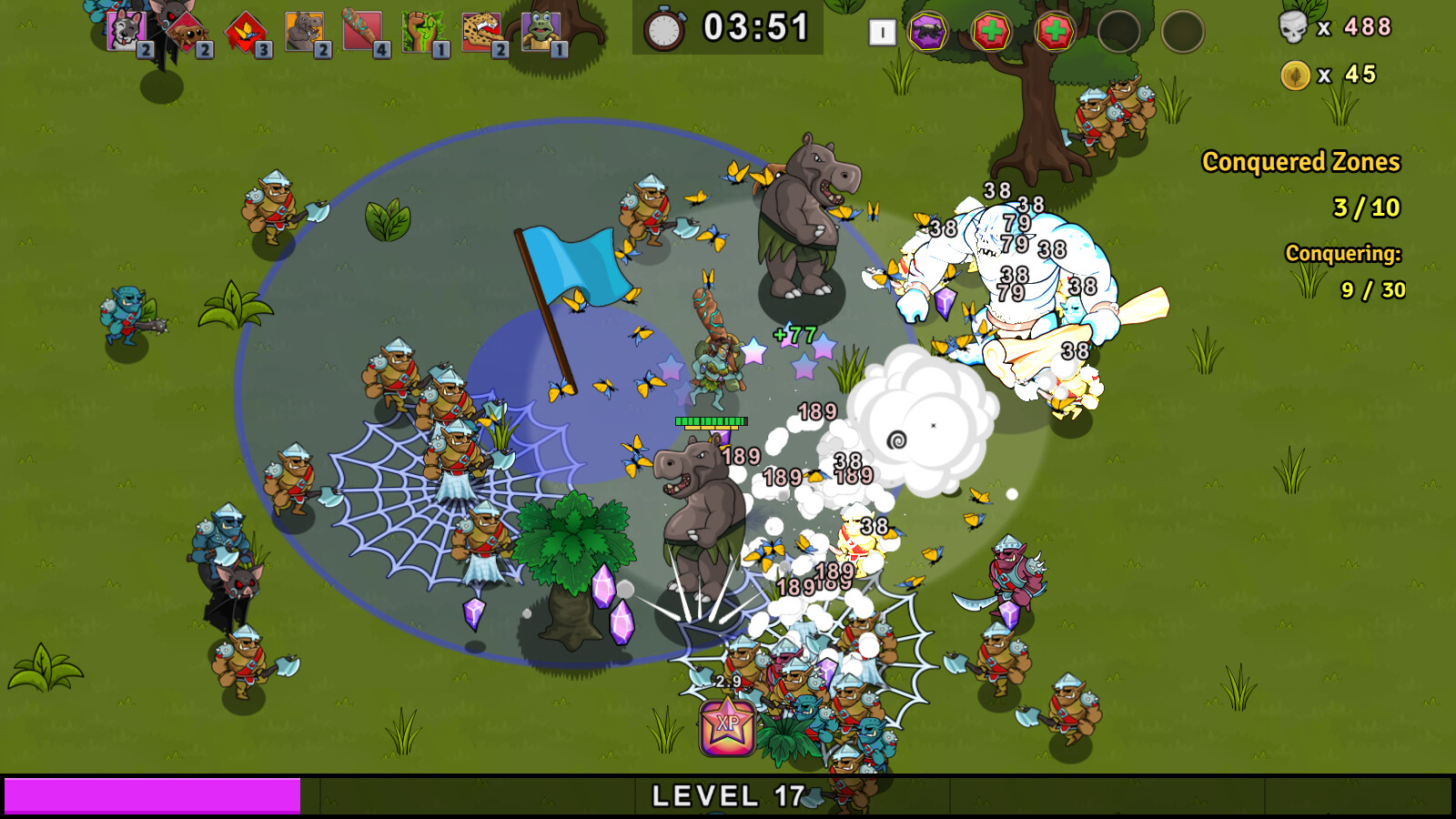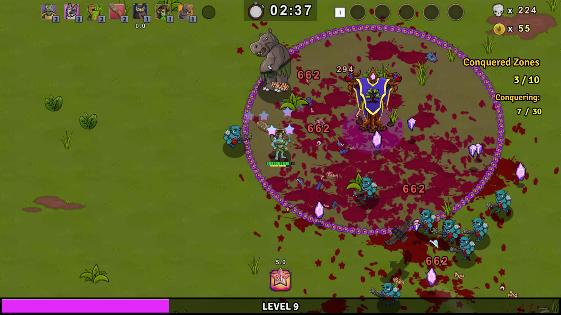 Collect magical crystals to earn new powers allowing you to summon fierce allies, deadly weapons and digest enchanted mushrooms.